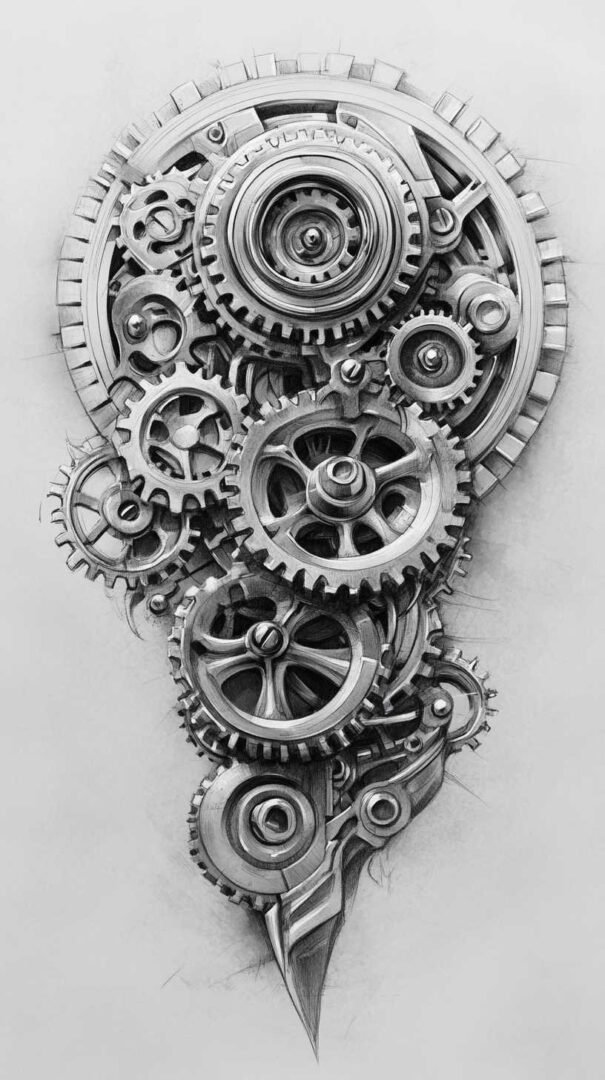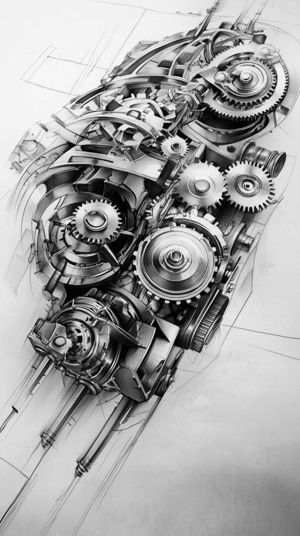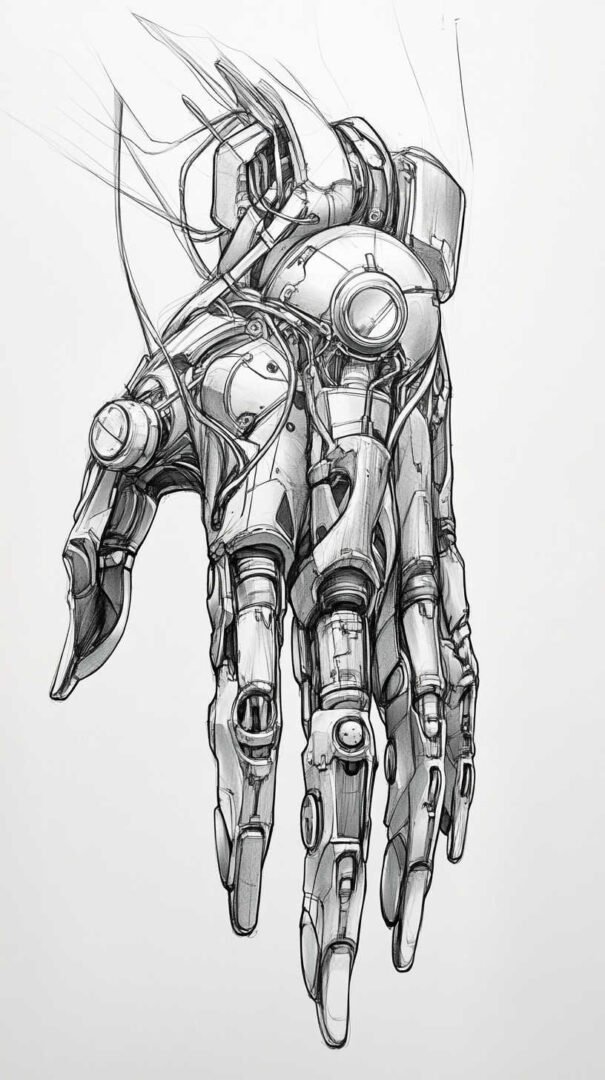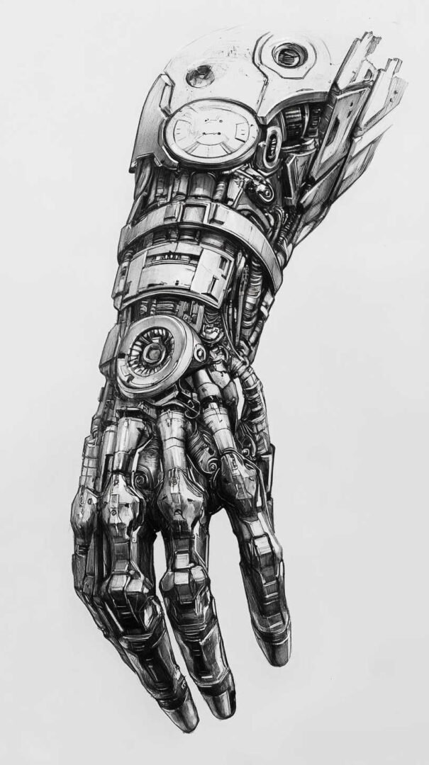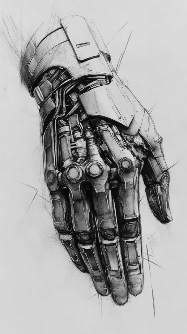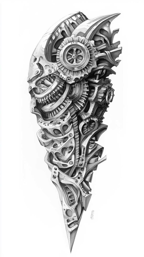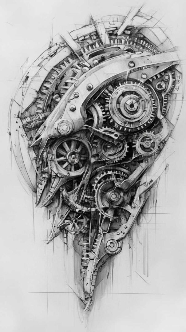 These futuristic pieces show skin tearing away to reveal gears, circuits, pistons, or robotic endoskeletons underneath. The contrast between organic flesh and metallic elements creates stunning visual tension. A 4K HD sketch highlights every rivet, cable texture, and metallic sheen for maximum realism. - Animals and Creatures Emerging from Skin