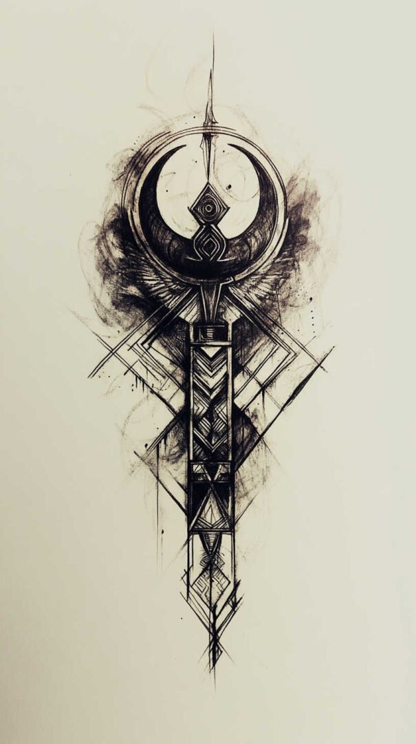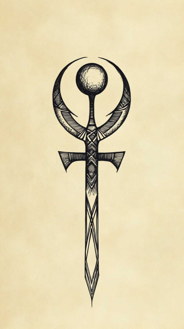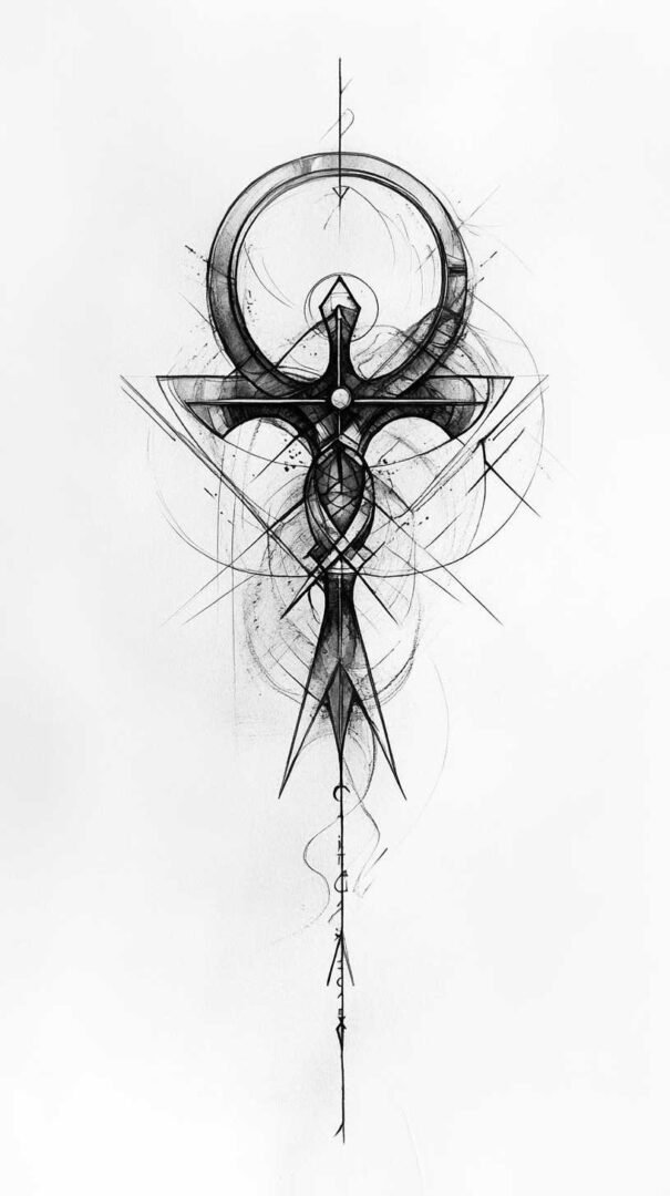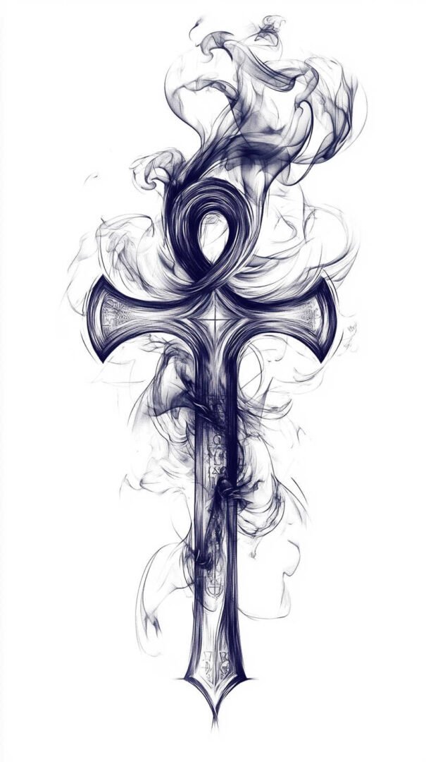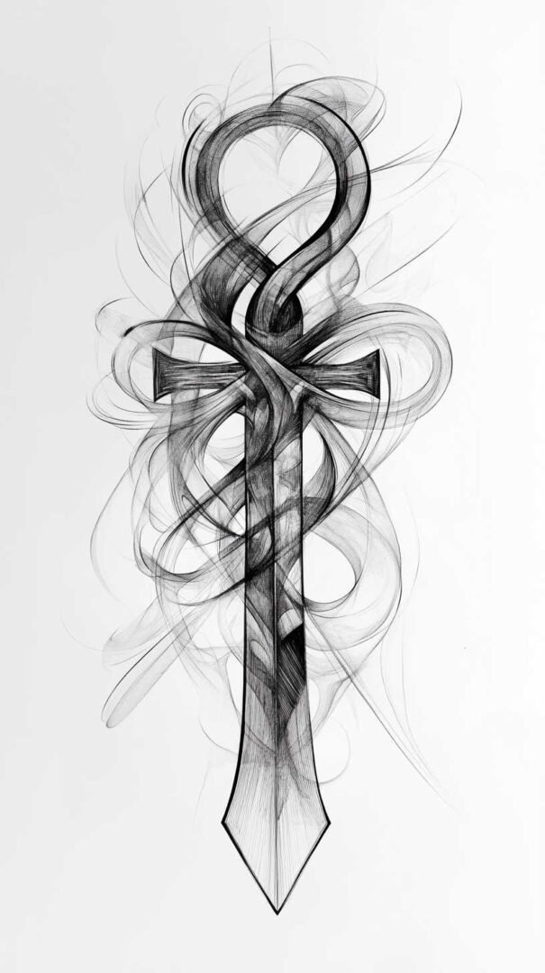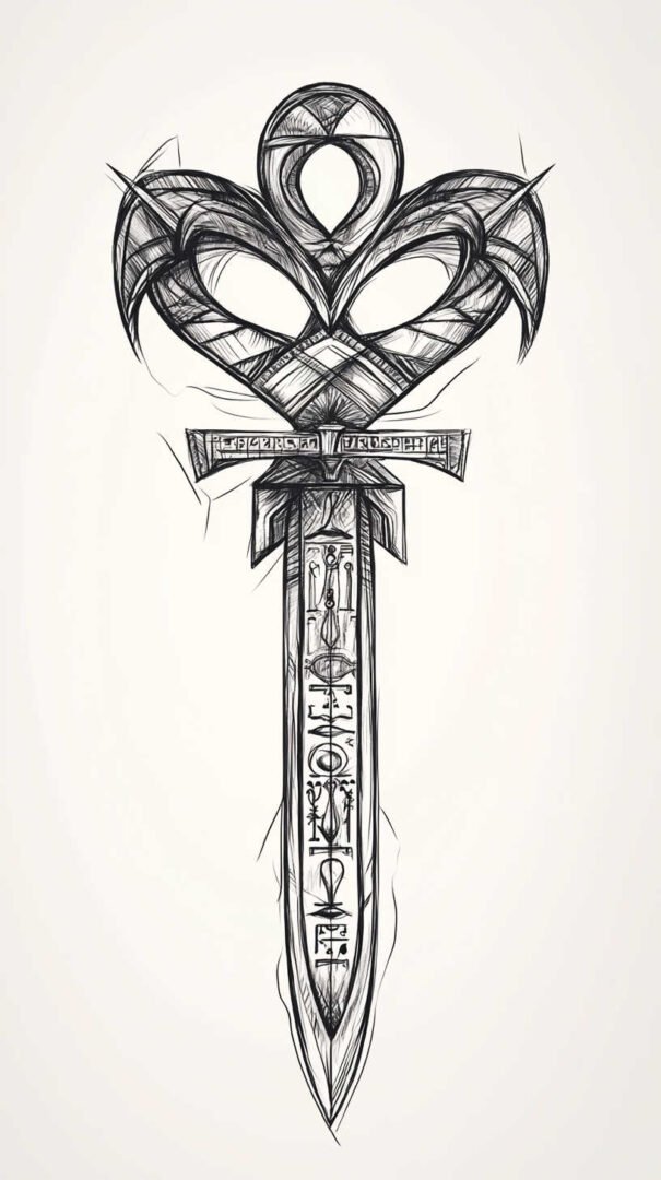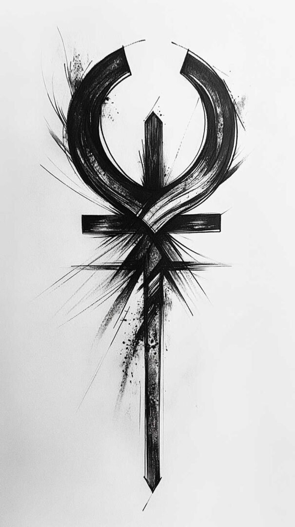 Finally, abstract ankh designs distort the traditional shape for artistic expression, such as elongating the loop into waves. HD sketches ensure these distortions remain intentional and visually coherent.