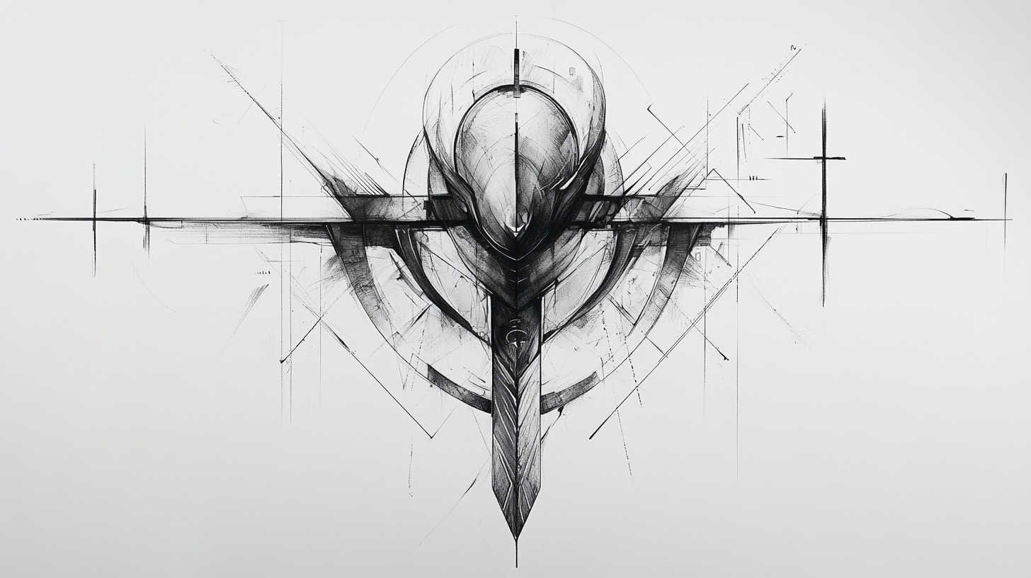 Incorporate perspective for dynamic sketches, like an ankh tilting forward. High-definition rendering captures foreshortening effects accurately.