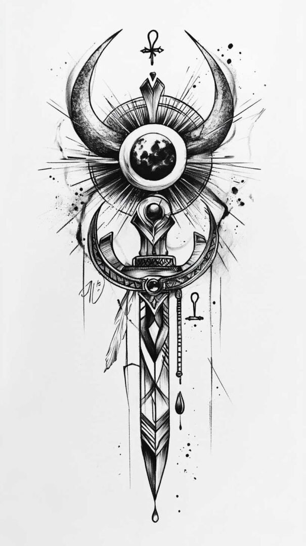 Ankh sketches often serve as focal points in larger tattoos. For sleeve designs, position the ankh centrally, surrounded by complementary symbols like scarabs or pyramids.