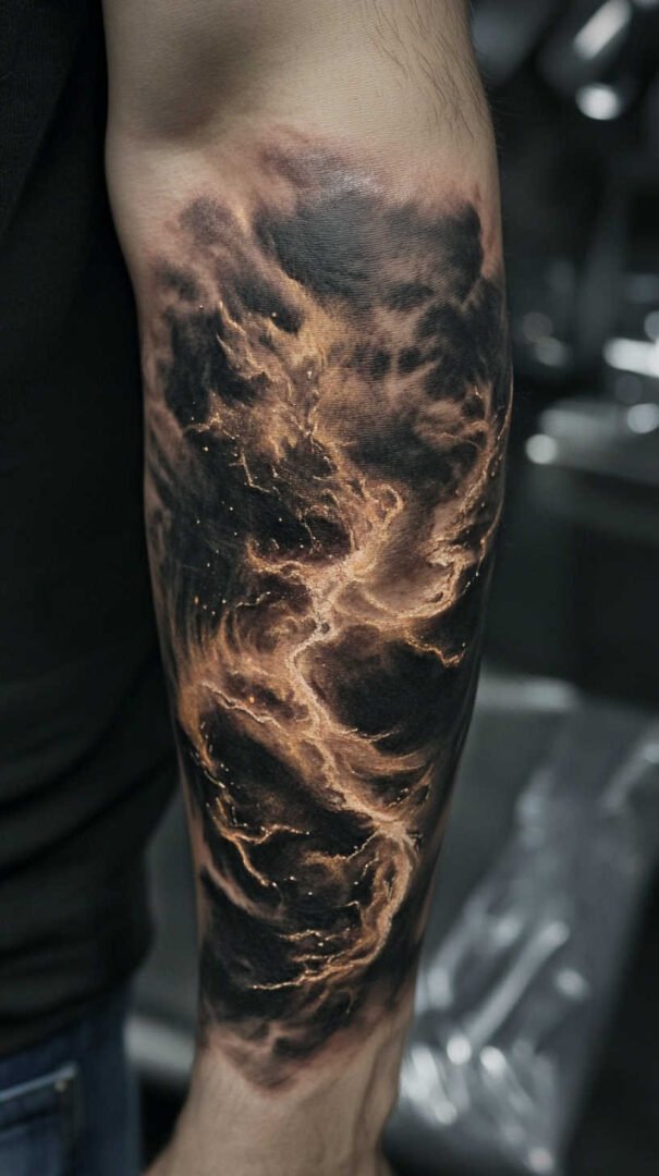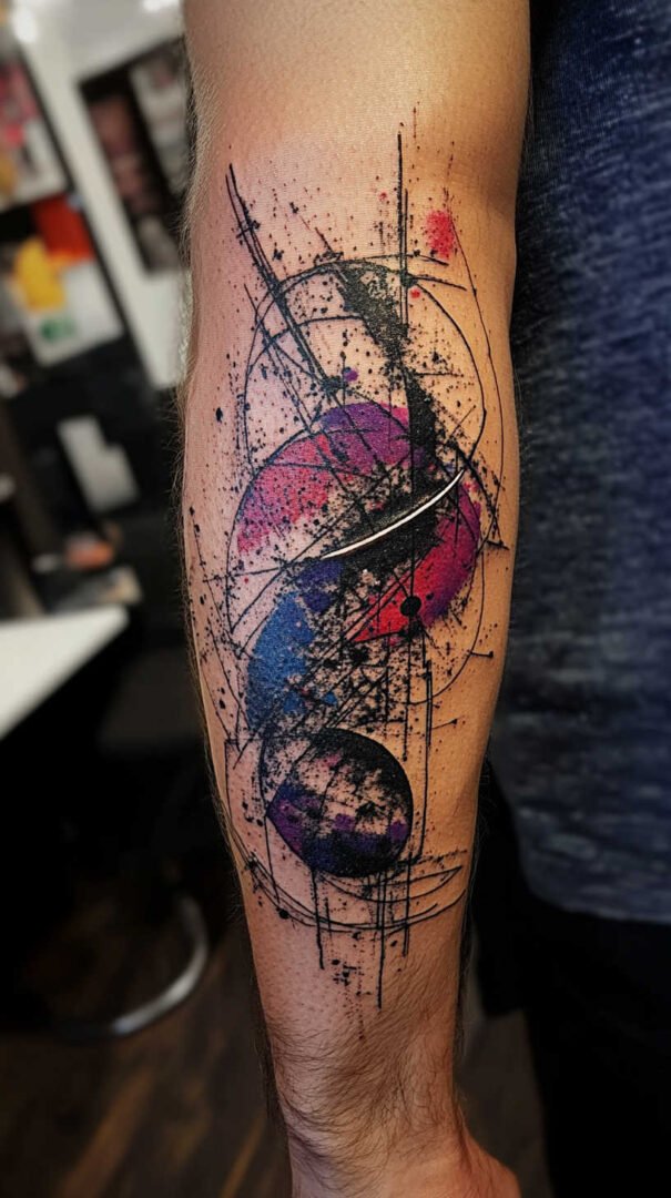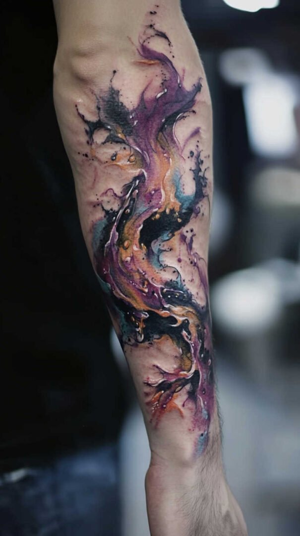 With proper care, these tattoos remain vibrant, their abstract beauty enduring.