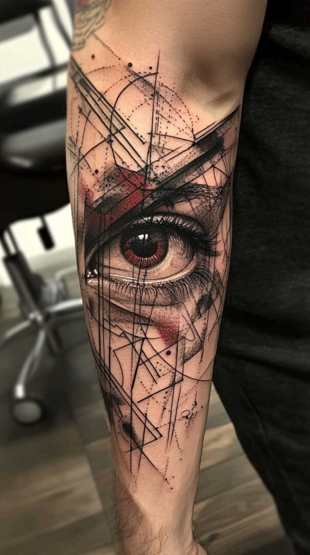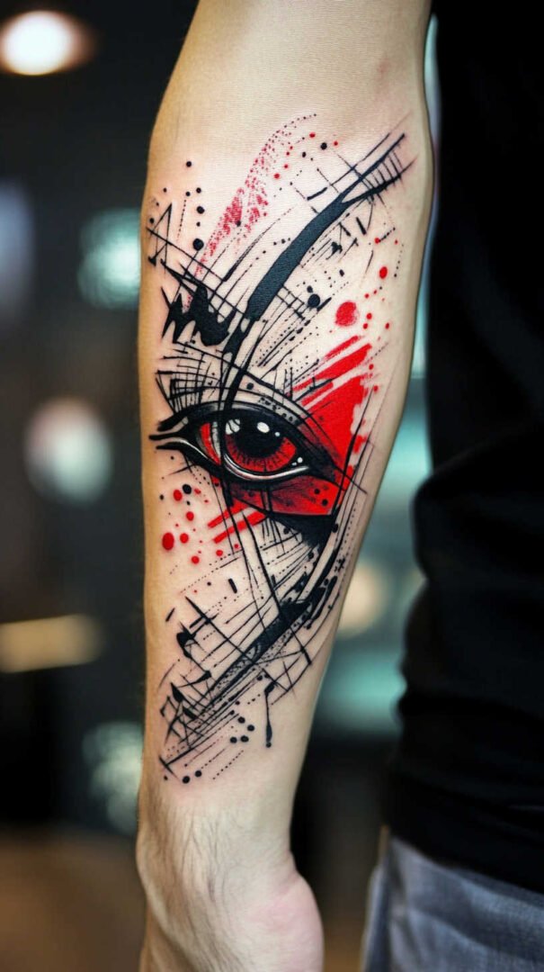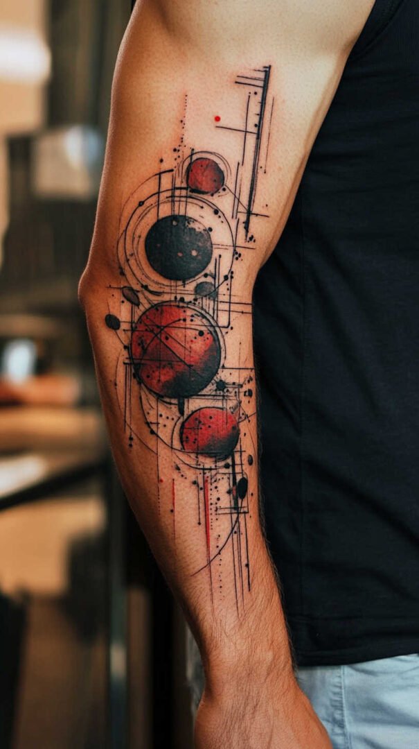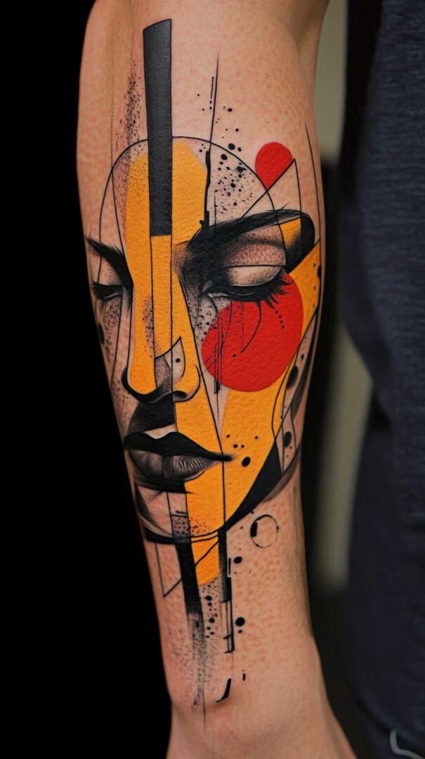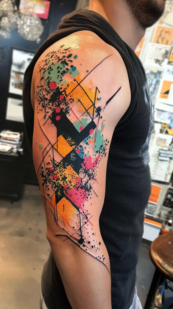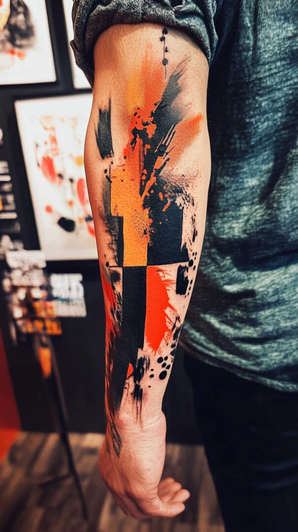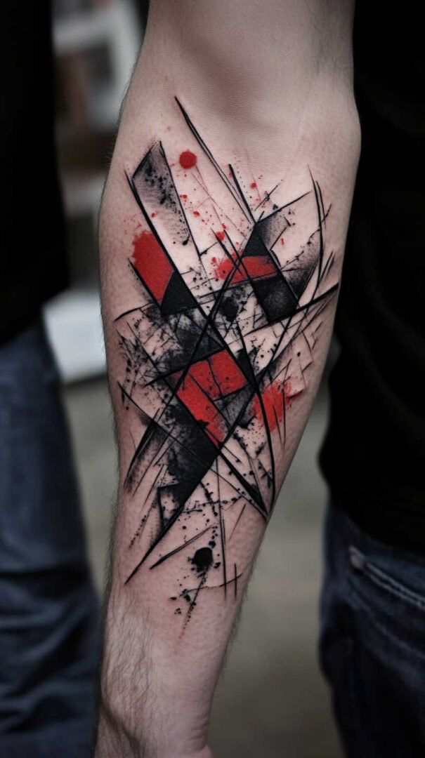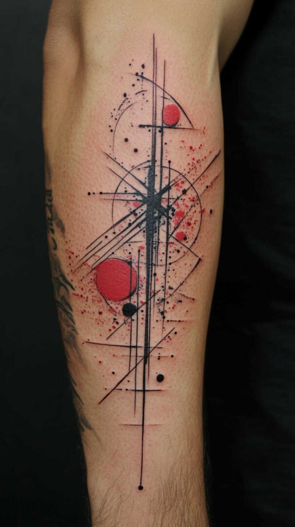 Abstract tattoos are defined by their departure from realism. Instead of depicting recognizable objects like animals, portraits, or landscapes, they rely on shapes, lines, colors, and textures to create meaning. This style draws inspiration from various artistic principles, emphasizing balance, contrast, and harmony.