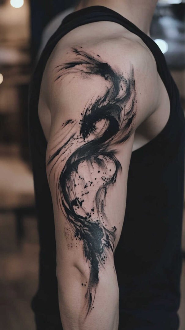 - Fluid Abstractions: Think ink flows resembling water or smoke. A shoulder design might depict swirling tendrils that morph into sharper edges, representing transformation. HD techniques ensure smooth transitions without blurring, like a high-res digital wave.