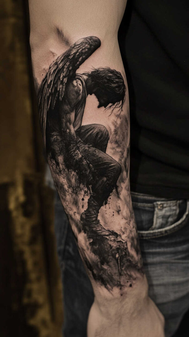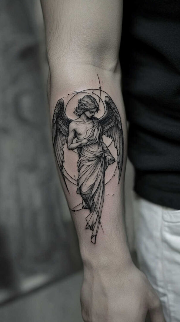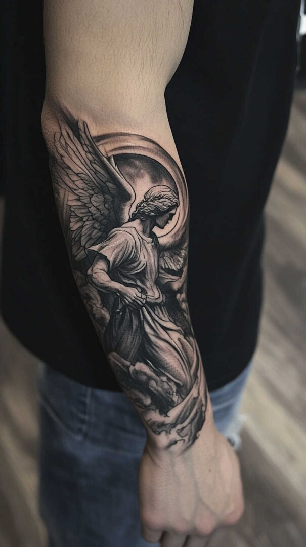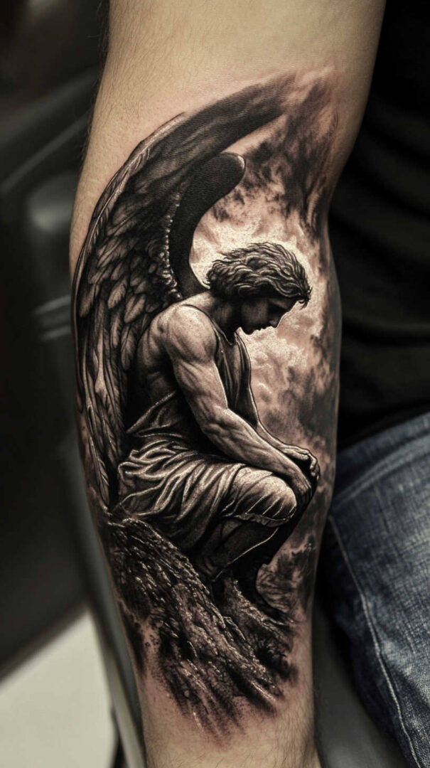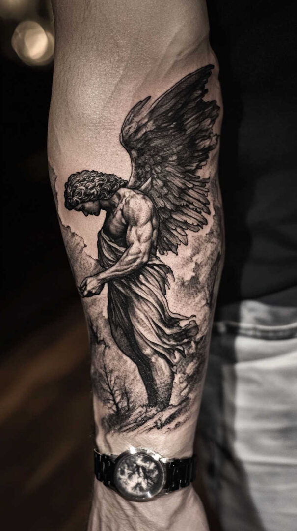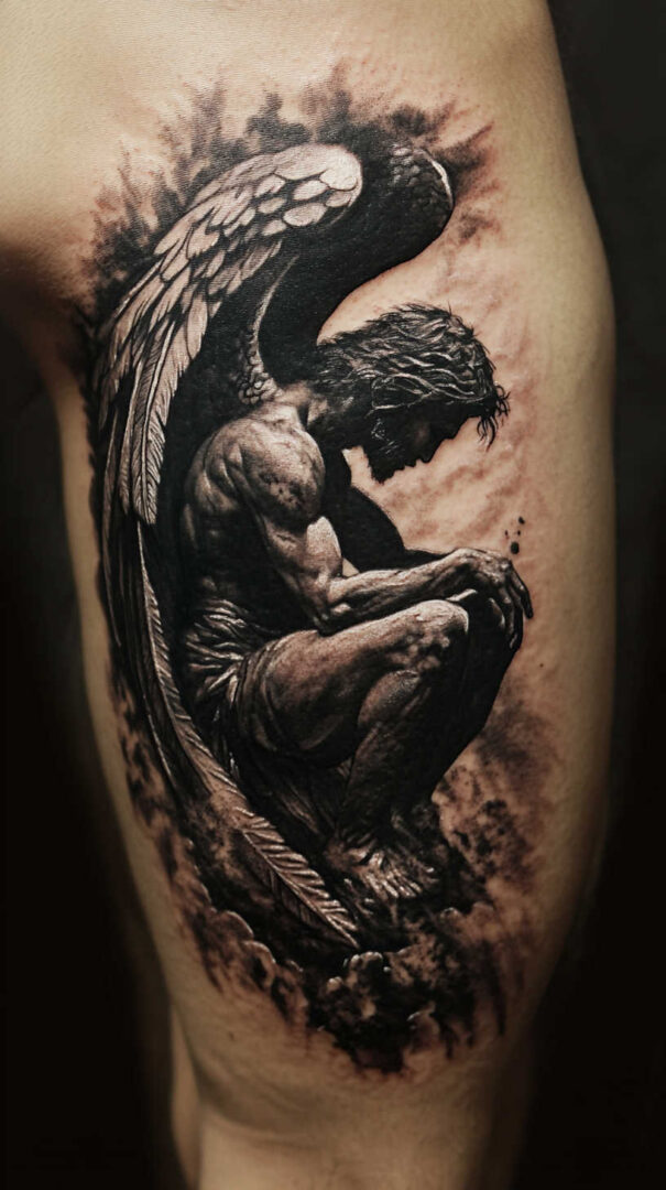 Angel tattoos for men in 4K HD designs channel protection, courage, faith, and redemption through majestic figures, powerful wings, and symbolic depth. From serene guardians and armored archangels to fallen reflections of resilience, each sketch embodies spiritual armor and personal legend. Visualize meticulously in stunning resolution, choose with heartfelt intention, and wear ink that guards and inspires your journey.