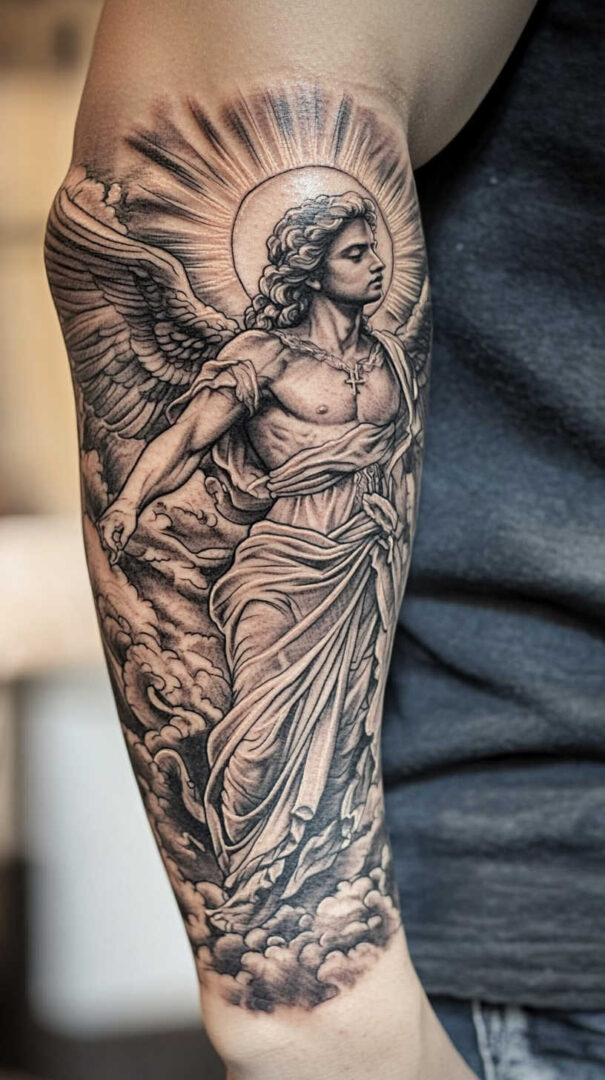 - Upper Arm / Sleeve — Warrior archangel or detailed guardian for visible strength.