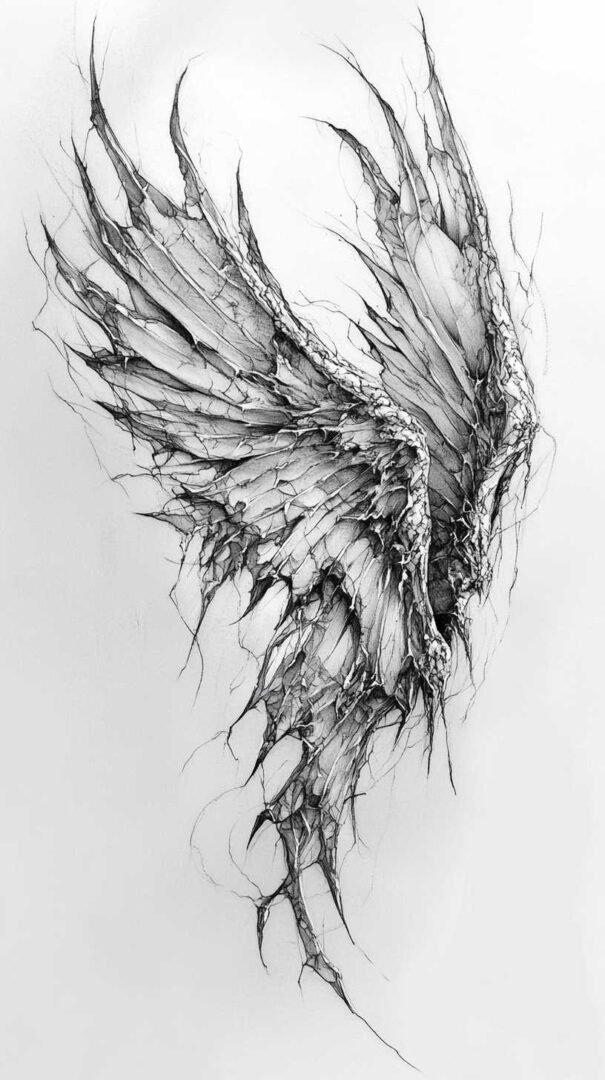 Hyper-realistic angel wings focus on intricate feather textures, light reflections, and three-dimensional shading. In 4K-quality drawings, every plume stands out with fine lines and subtle color variations—pure white for heavenly purity or muted grays for a more ethereal feel. Single-wing designs on arms or ribs offer asymmetry, while paired wings on the chest or calves provide balance. These often include subtle blood drips, torn edges, or glowing effects for emotional depth.