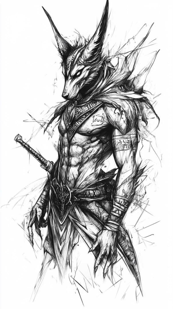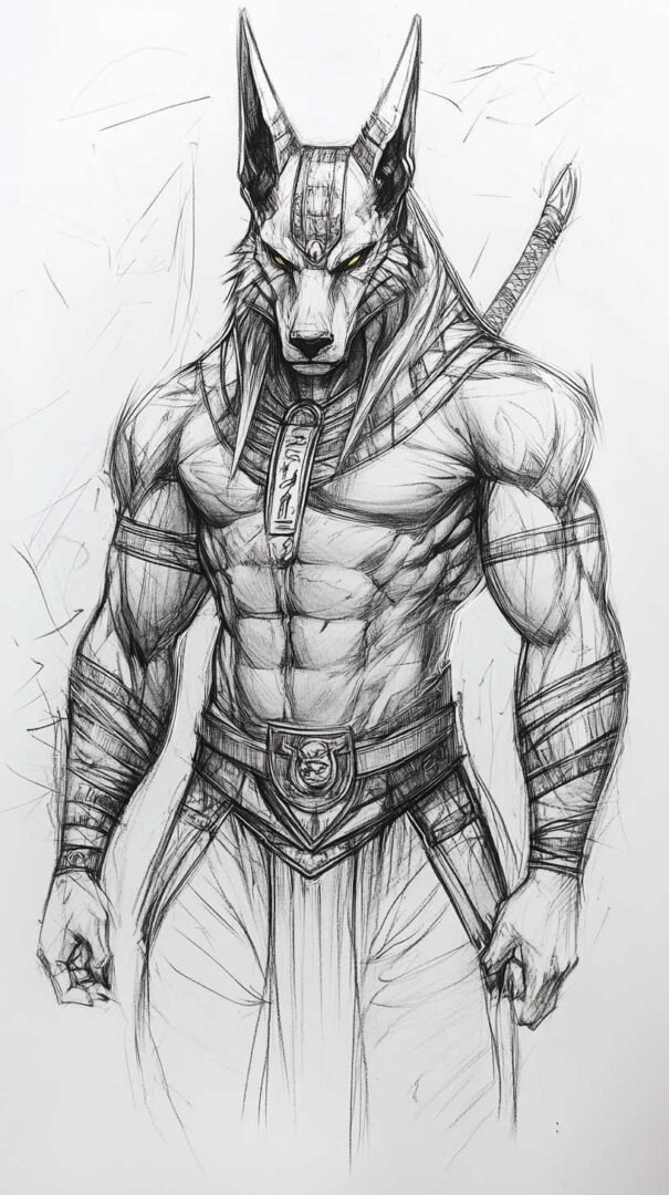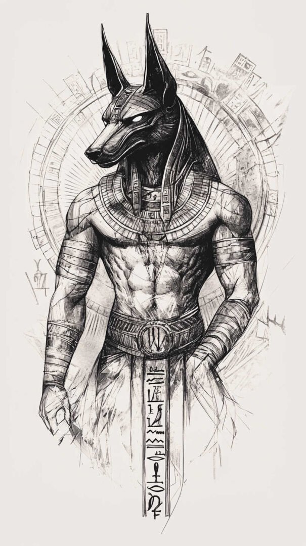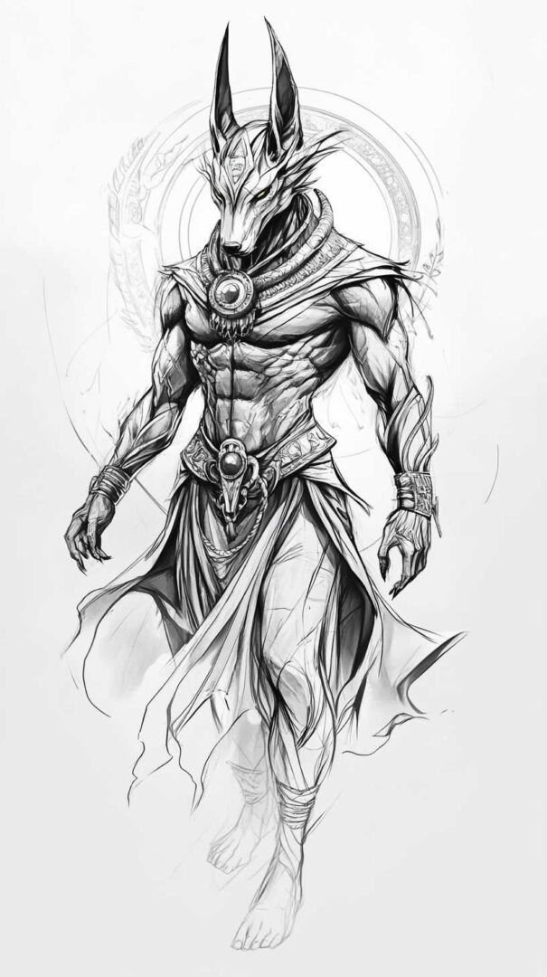 Anubis, the jackal-headed deity of ancient Egyptian mythology, stands as one of the most captivating figures in the pantheon of gods. Known as the protector of graves, the embalmer of the dead, and the guide to the underworld, Anubis has transcended millennia to become a powerful symbol in contemporary tattoo art. His image—fierce yet solemn, mysterious yet protective—lends itself perfectly to high-resolution, detailed sketches that capture every nuance in 4K HD clarity.