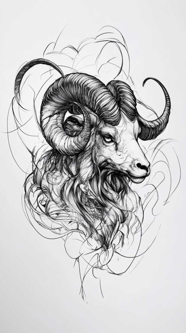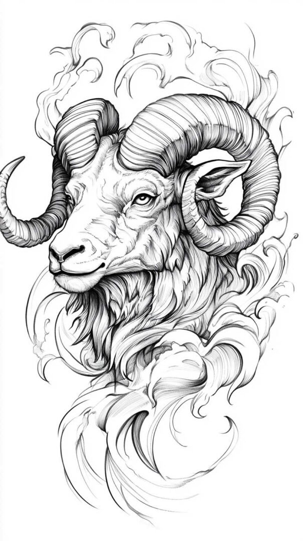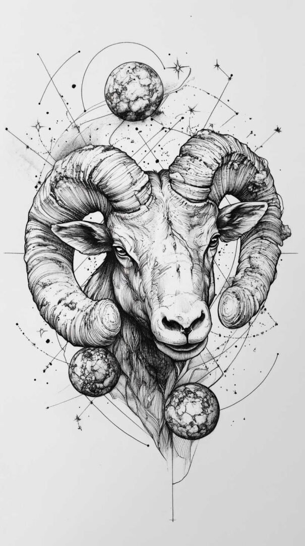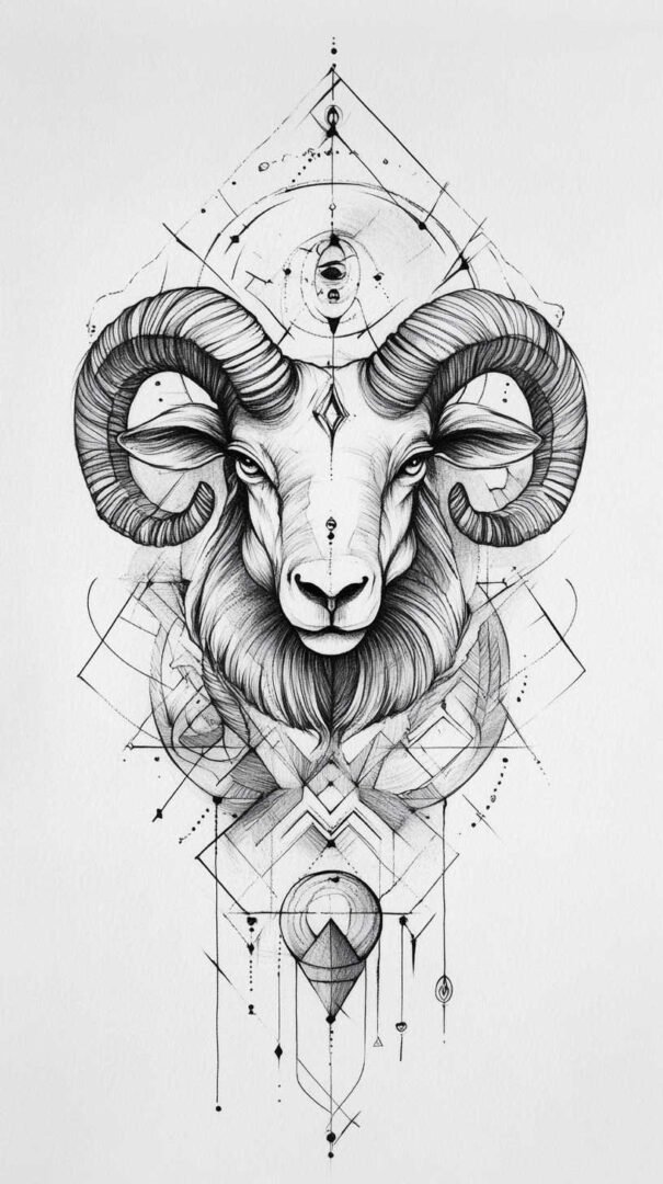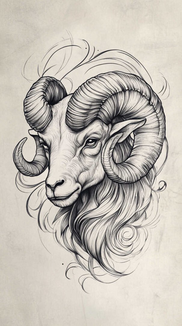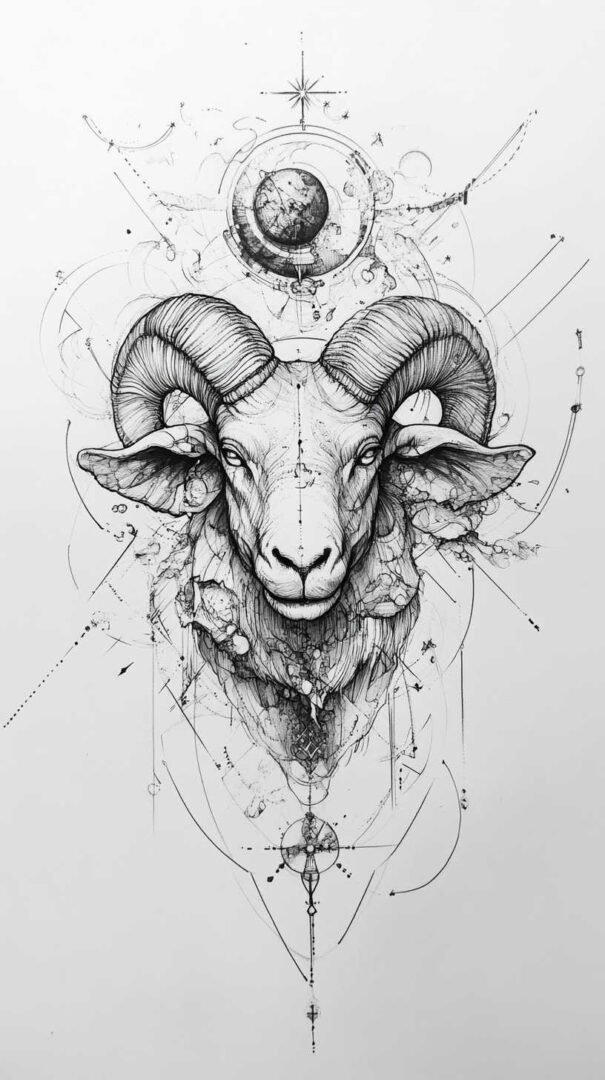 These 4K HD sketches show every whisker and muscle ripple, making them ideal for larger pieces on the forearm, shoulder, or chest. Add subtle fire elements or smoke trails behind the ram to emphasize Aries’ fiery nature.