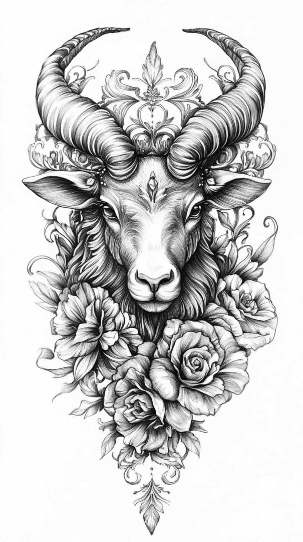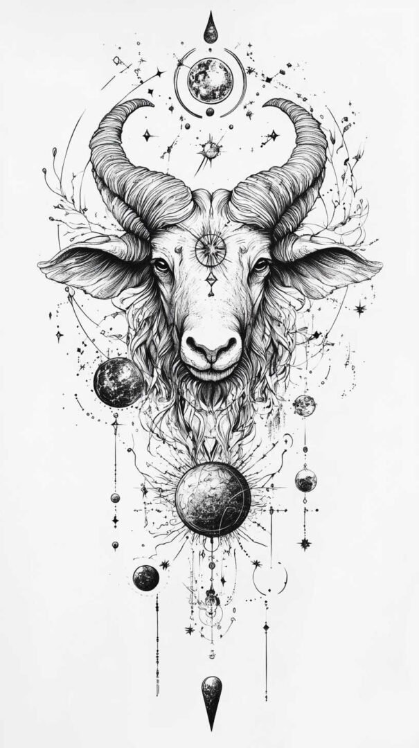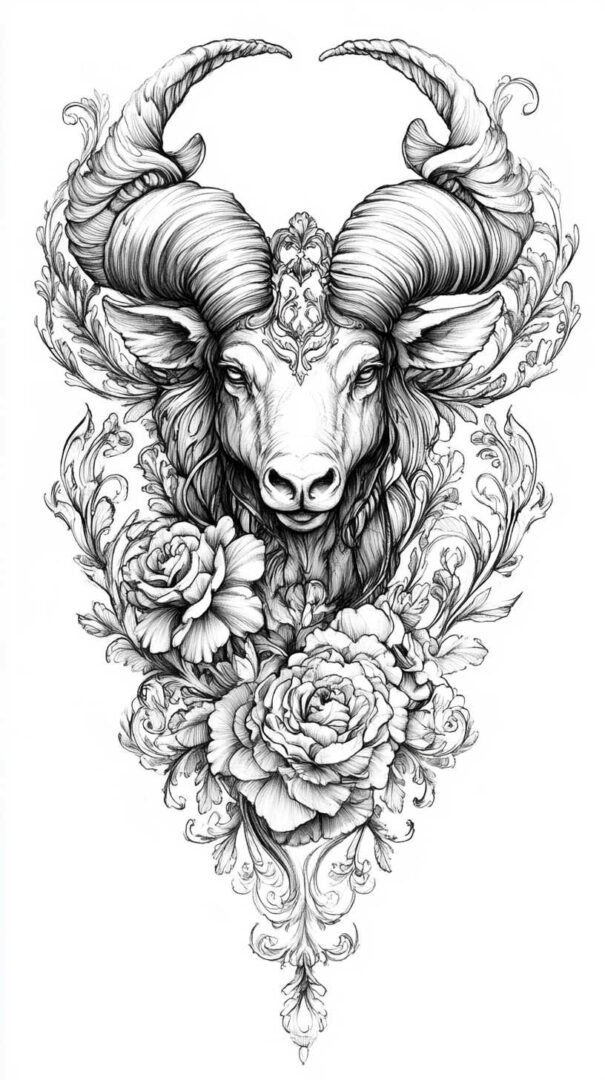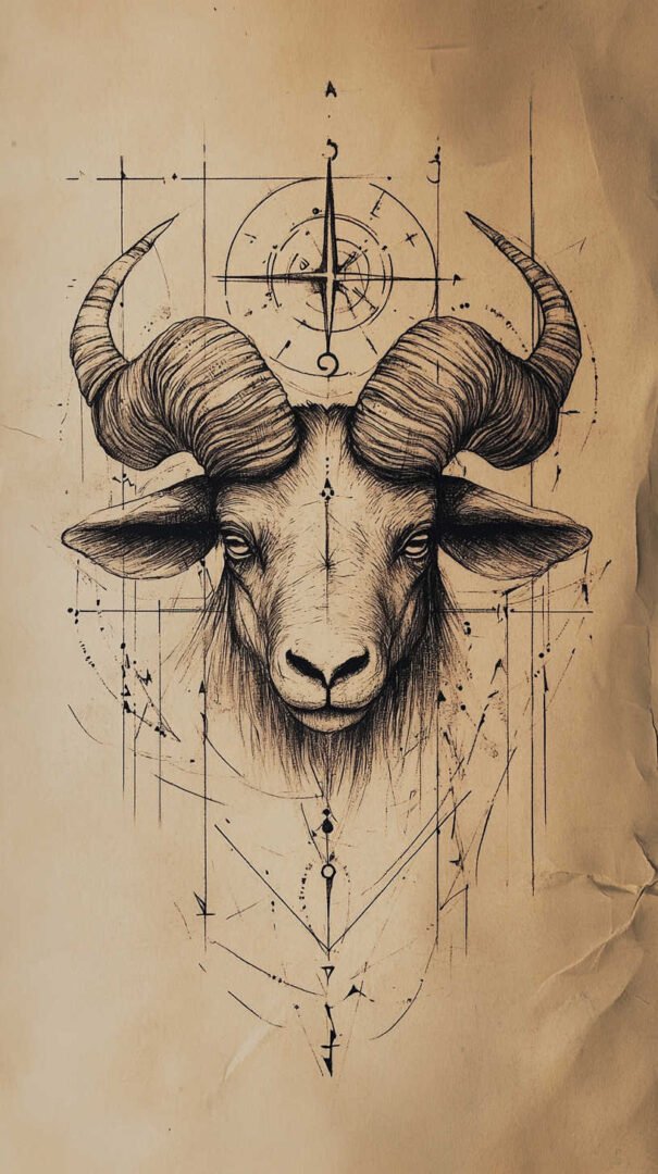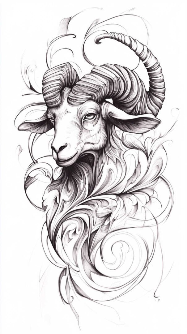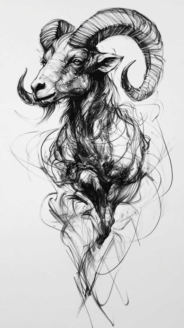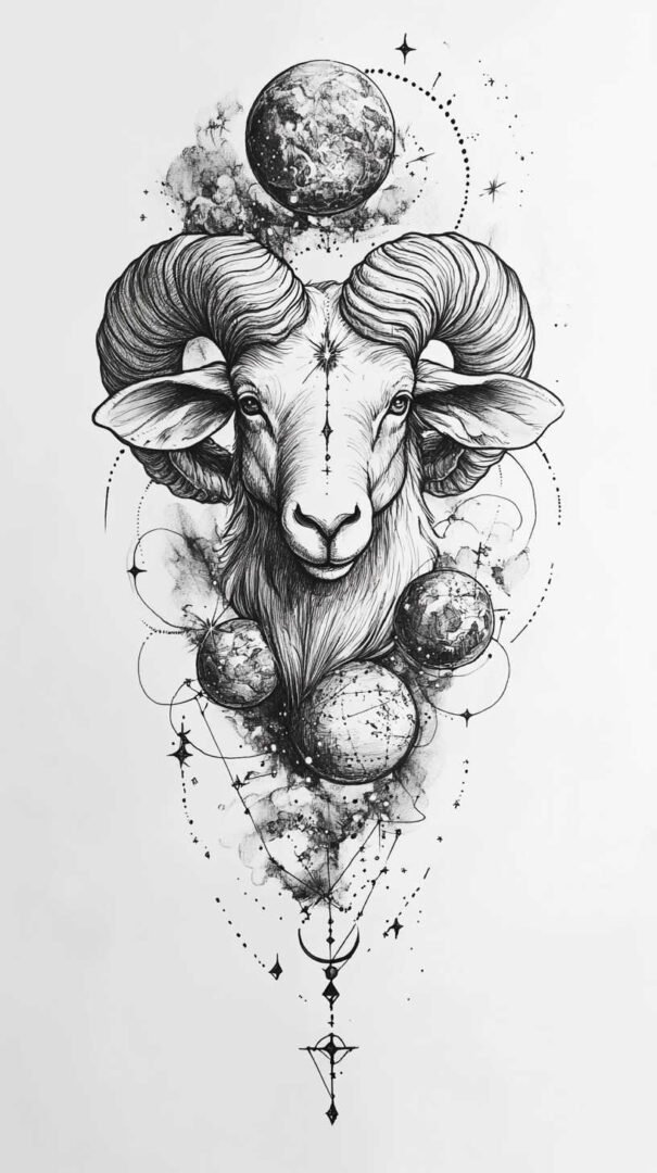 These 4K HD sketches show every whisker and muscle ripple, making them ideal for larger pieces on the forearm, shoulder, or chest. Add subtle fire elements or smoke trails behind the ram to emphasize Aries’ fiery nature.