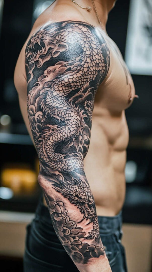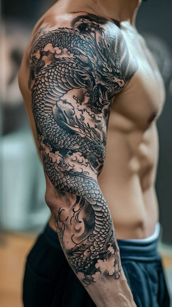- Mythical Creatures: Dragons, phoenixes, or Norse gods come alive with scales, feathers, and runes in crisp definition. Upper arm placements allow for dynamic poses, where fire effects or wing spans utilize gradient shading for a 4K-like glow.