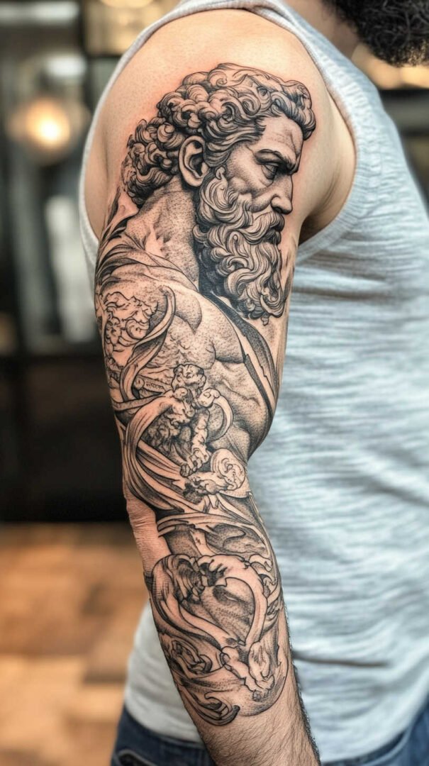 - Half Sleeve: Covering from shoulder to elbow or elbow to wrist, half sleeves balance coverage and detail. They’re great for men testing larger tattoos, allowing HD features without overwhelming the arm.