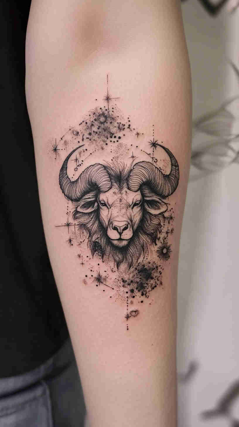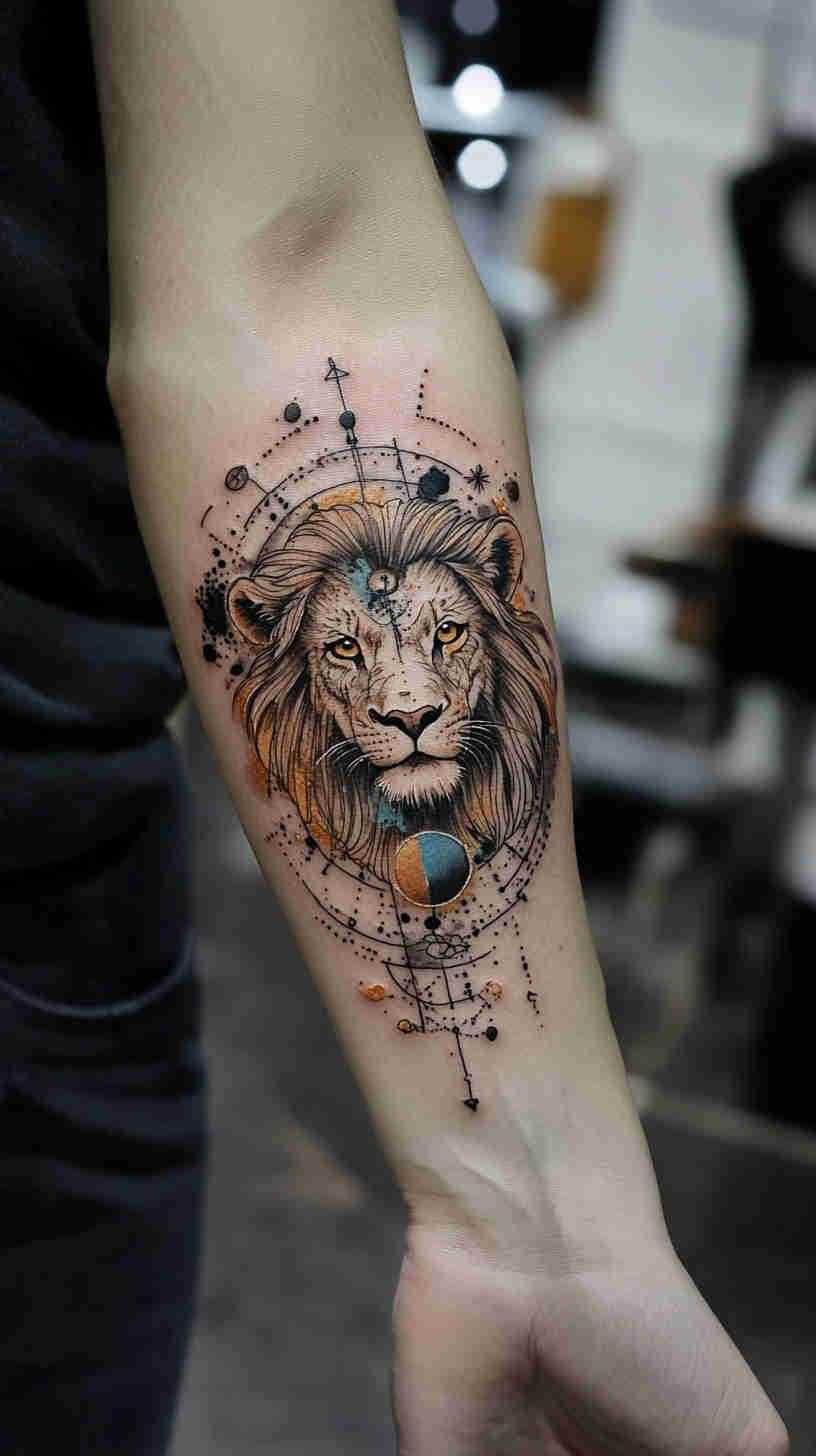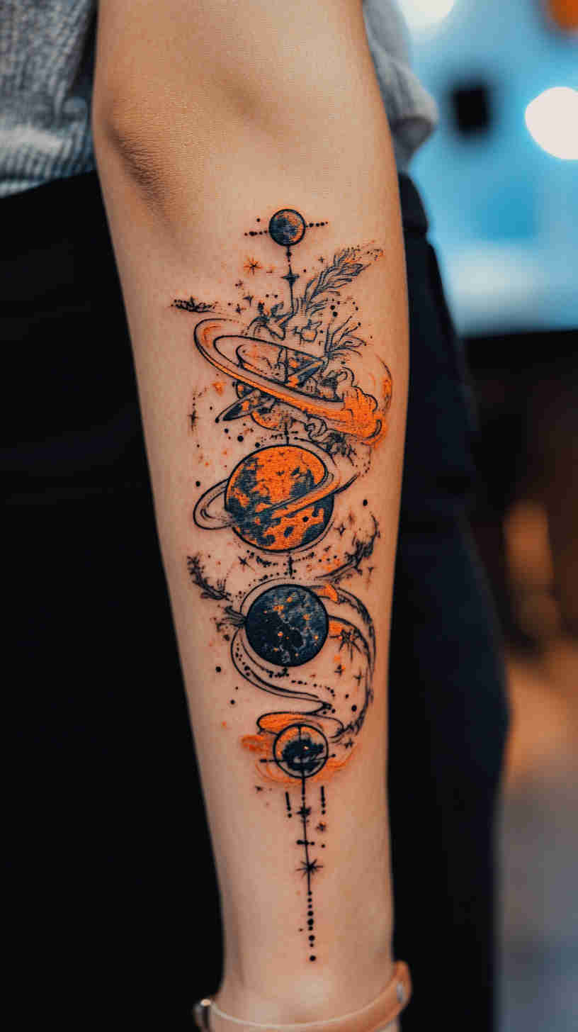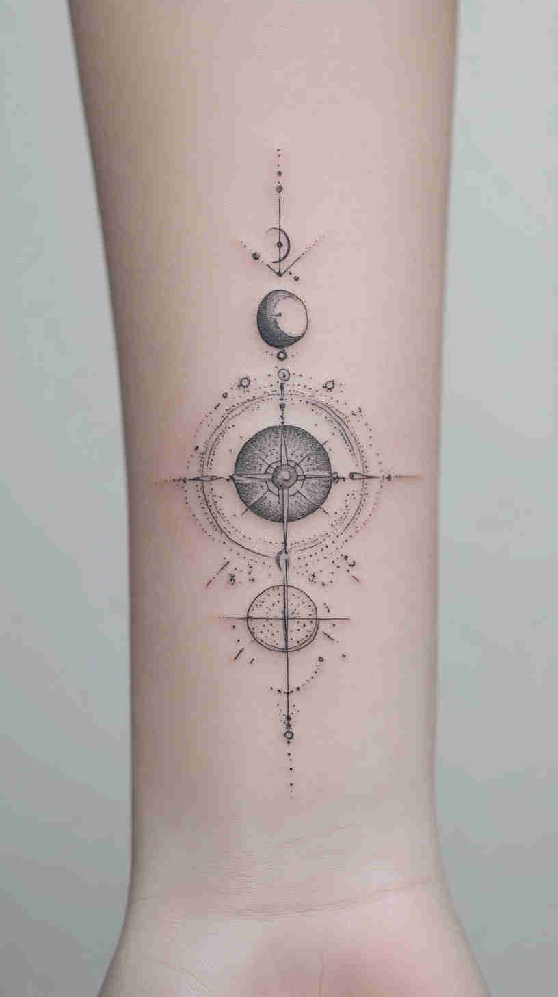 Social feeds shimmer with constellation maps wrapping wrists and ankles, minimalist zodiac glyphs on collarbones and fingers, watercolor birth chart elements blending planets and houses, realistic planetary portraits (especially Moon and Venus), fine-line horoscope symbols forming elegant bracelets, and large-scale cosmic sleeves merging multiple signs with galaxies, phases, and sacred geometry. Female tattoo artists have brought fresh elegance to the genre – softer palettes, feminine curves in linework, empowering planetary personifications, and delicate dotwork star fields.