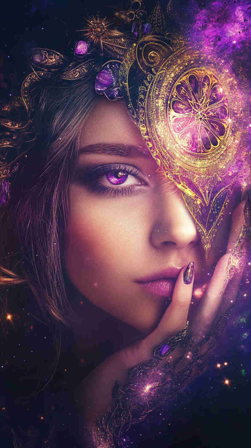 - Bold Leo lioness portraits with mane flowing into starry fields – regal eyes and subtle crown motifs, symbolizing radiant confidence and leadership.