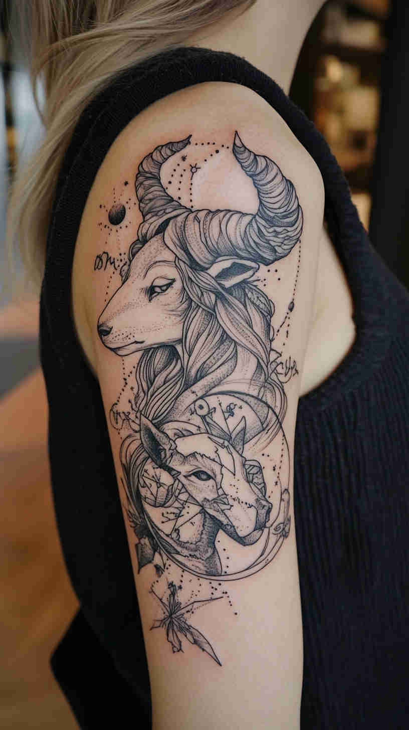 Astrology tattoos have experienced explosive growth among women in recent years. The zodiac offers twelve powerful archetypes, each rich with feminine interpretations: Aries as bold initiator, Taurus as sensual earth mother, Gemini as curious communicator, Cancer as nurturing protector, Leo as radiant queen, Virgo as precise healer, Libra as harmonious diplomat, Scorpio as transformative alchemist, Sagittarius as free-spirited explorer, Capricorn as ambitious mountain goat, Aquarius as visionary rebel, Pisces as intuitive dreamer.