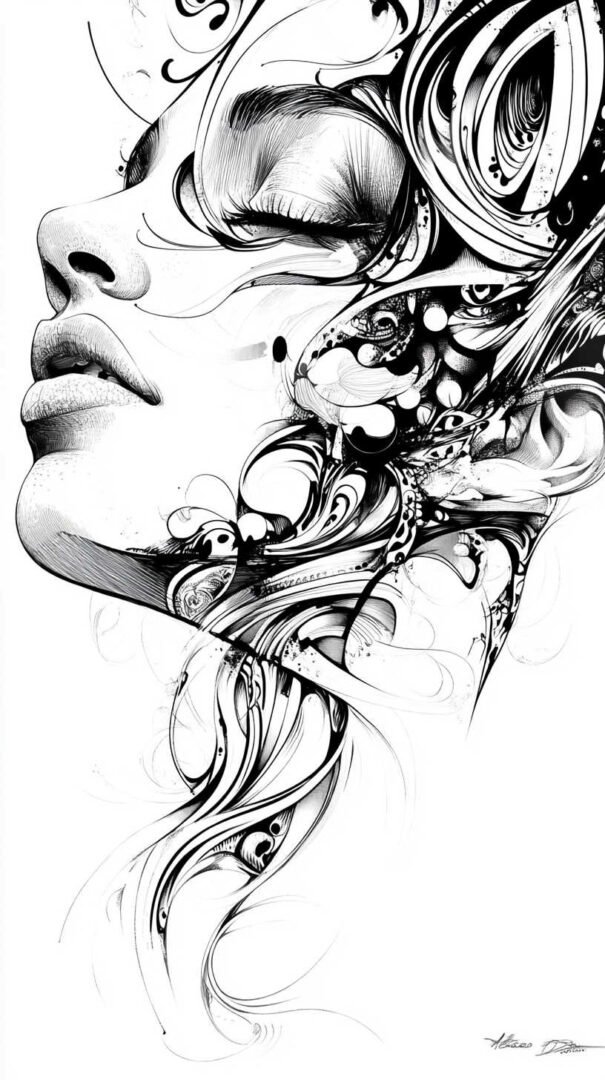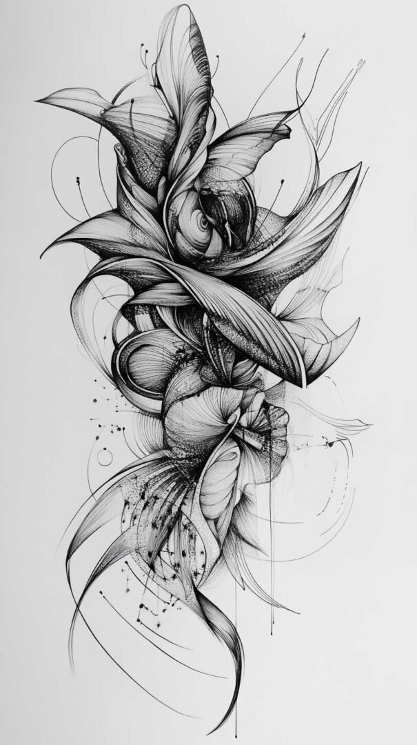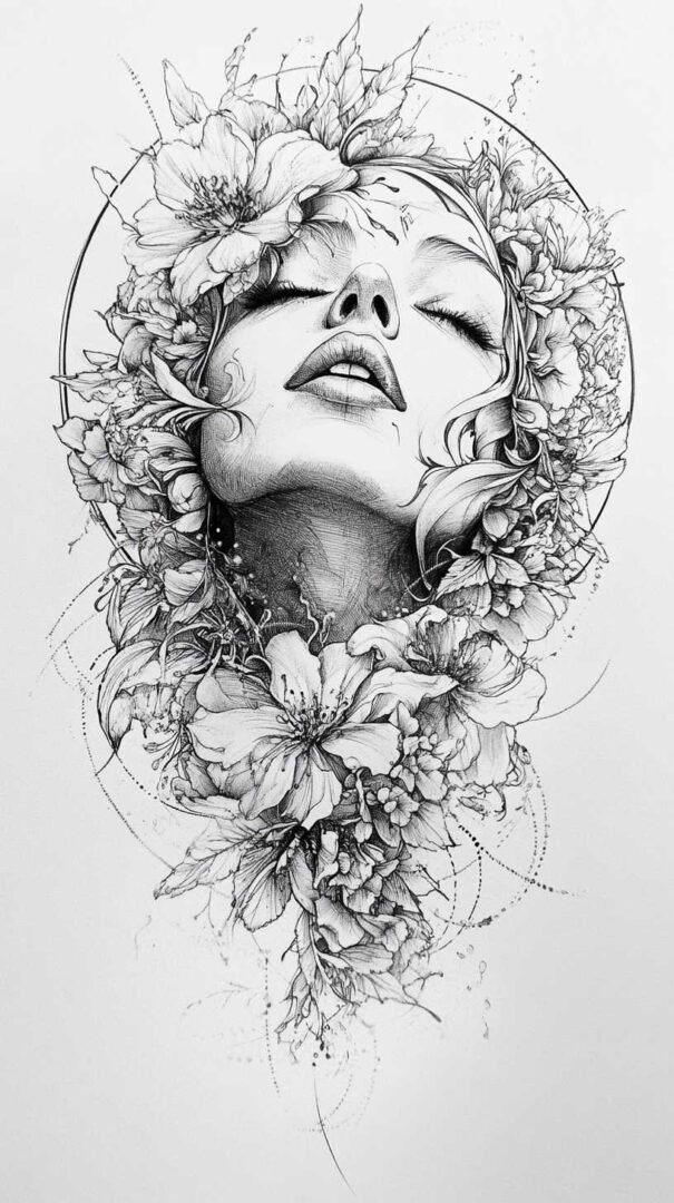 Artists enhance these sketches with Art Nouveau-inspired curves and Art Deco filigree, adding sophistication. The result is versatile art suitable for sleeves or standalone pieces, where high-resolution clarity highlights every nuance—from feather textures to petal veins—ensuring the design feels alive and immersive.