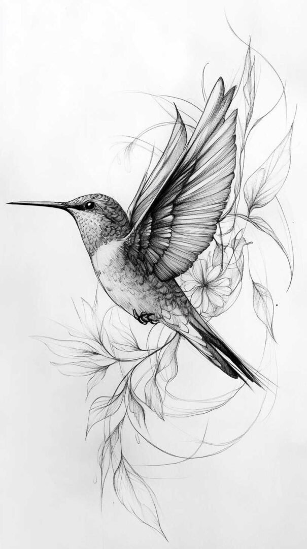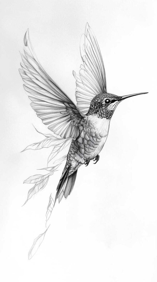 Hummingbirds bring a touch of whimsy and energy to tattoo art. Their tiny forms are perfect for minimalist designs, but in 4K HD, every iridescent feather and rapid wing beat is captured vividly. Sketches often depict them hovering near flowers, with elongated beaks probing petals, creating a dynamic composition. This species is ideal for smaller tattoos on ankles or fingers, where precision is key.