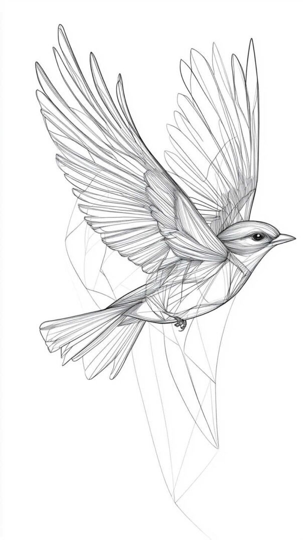 Watercolor styles soften edges, blending colors like a painting. In high definition, a watercolor bird sketch might feature a phoenix with fiery oranges bleeding into cool blues, droplets of “paint” adding spontaneity. This approach is popular for those seeking artistic flair over strict accuracy.