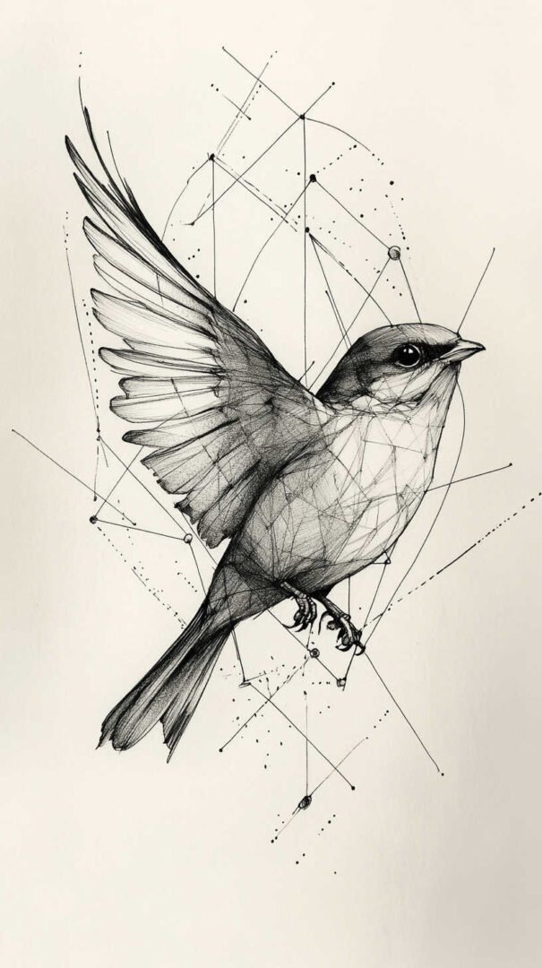Geometric designs deconstruct birds into shapes and lines. A 4K HD sketch could transform a dove into interlocking triangles and circles, with precise angles ensuring symmetry. This modern twist appeals to minimalists, often placed on forearms or collars.