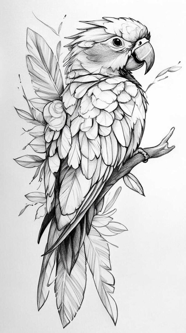 Traditional or old-school styles harken to bold outlines and vibrant fills. Sketches of birds like parrots might include exaggerated features, with thick black lines and primary colors popping in HD. These are timeless, evoking vintage sailor tattoos but refined with digital precision.