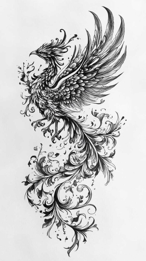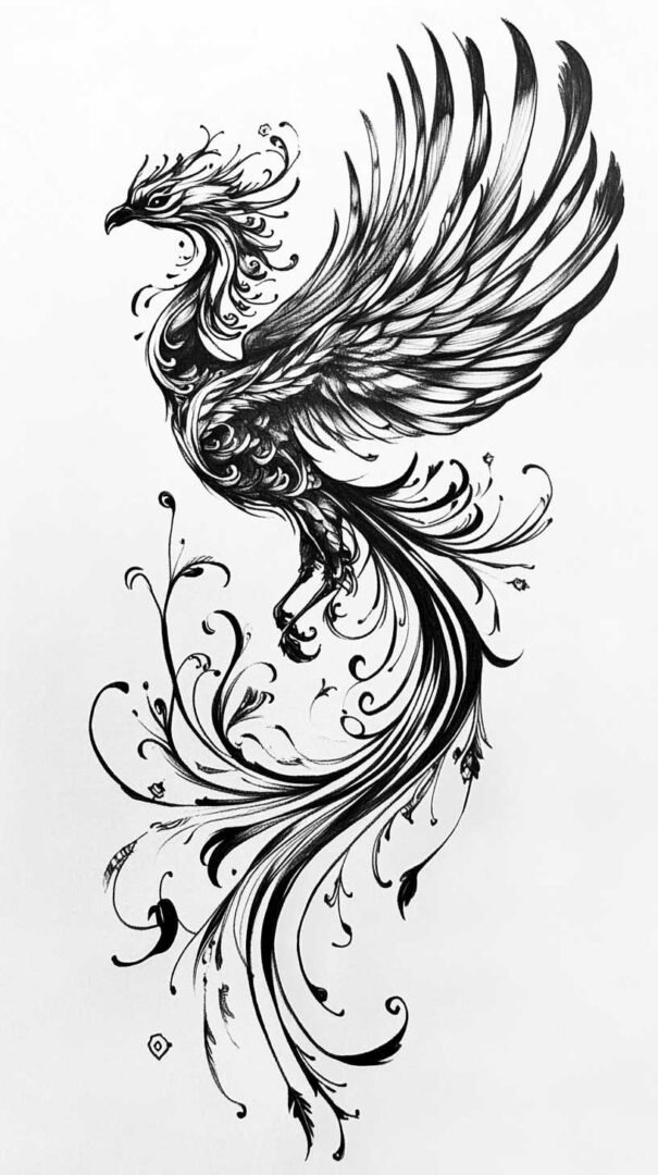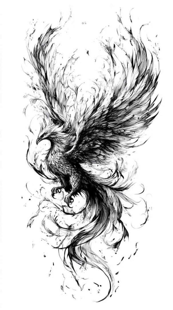 Birds carry rich symbolism across cultures, making them meaningful tattoo choices. In many traditions, they represent the soul’s ascent or messengers between realms. A 4K HD sketch of a phoenix, rising from ashes with flames curling around wings, symbolizes rebirth and resilience. The detail allows for nuanced expressions, like embers glowing in feathers.