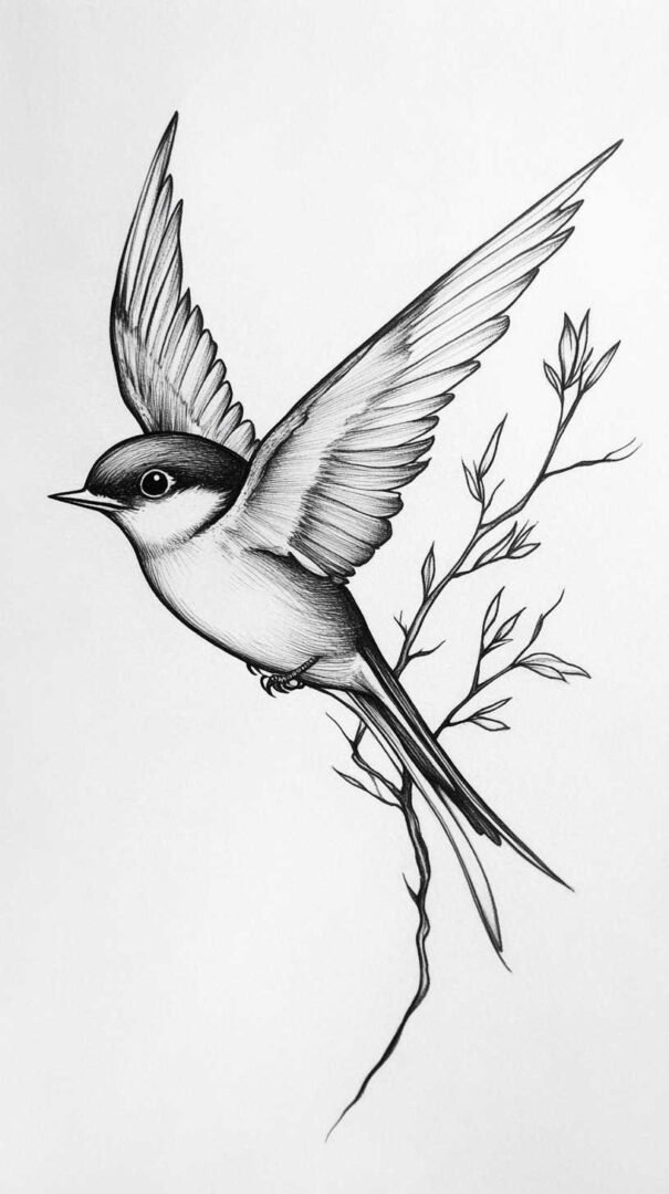 Swallows, evoking nautical traditions and safe returns, are classic choices. Sketches in 4K HD might show a pair in flight, wings curved elegantly, with banner elements for personalization. The clarity allows artists to add fine lines for wind currents or distant horizons, making the design feel alive.