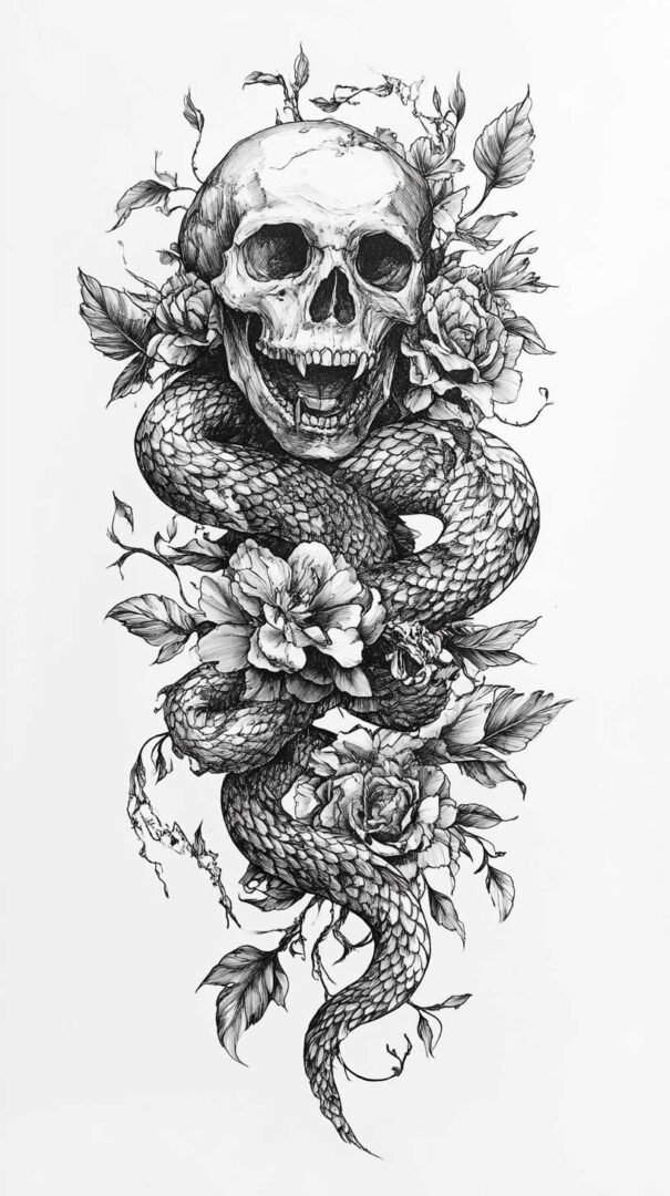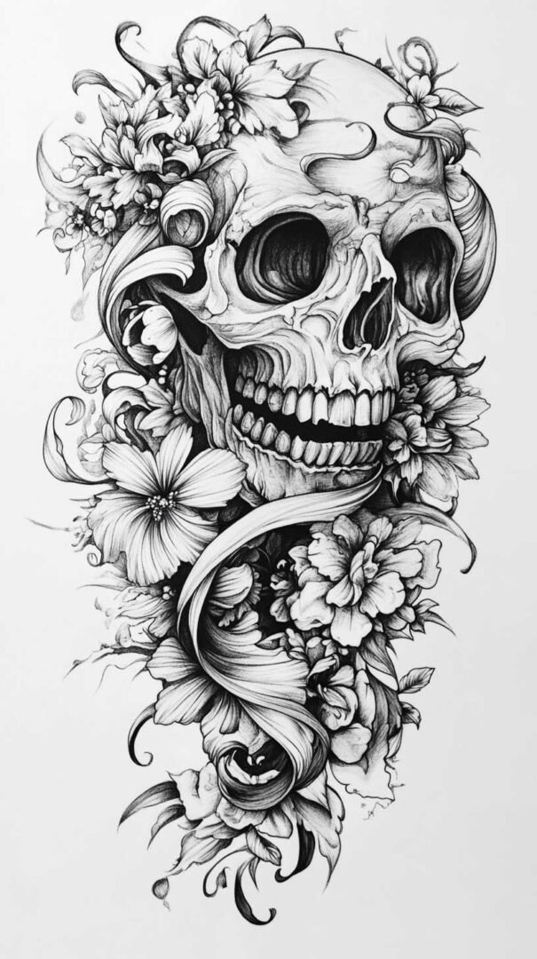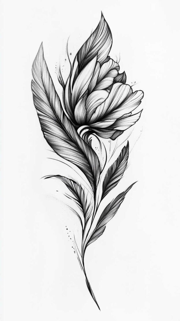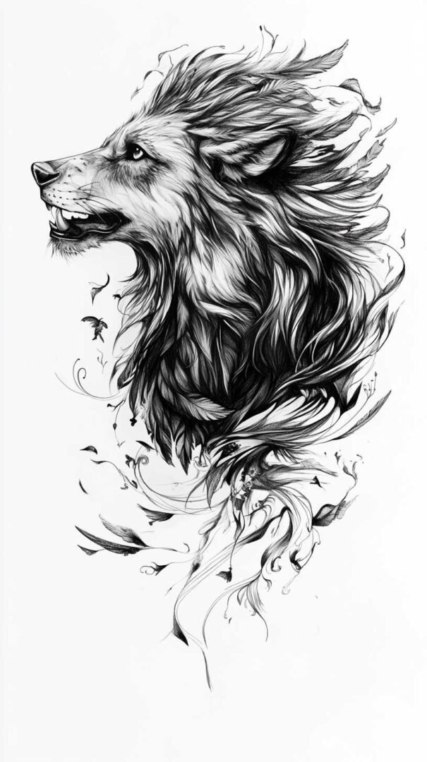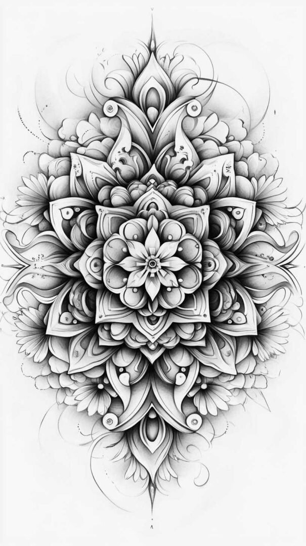 Mythical and fantasy elements add a layer of intrigue to black and white tattoo sketches. Dragons, phoenixes, and unicorns are popular choices, their forms twisting and coiling in dramatic poses. The high-resolution aspect of 4K HD allows for elaborate scales on a dragon’s body or the ethereal mane of a mythical horse, all rendered through varying line weights and shadow gradients.