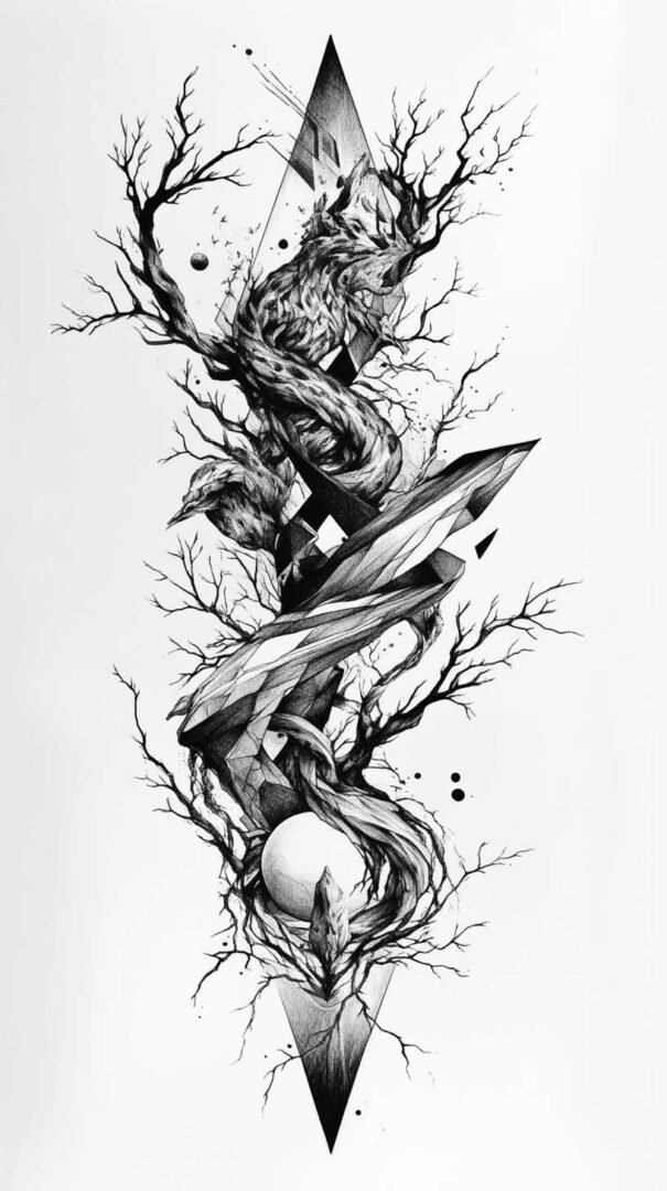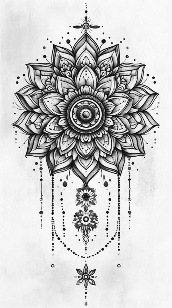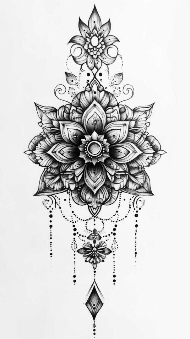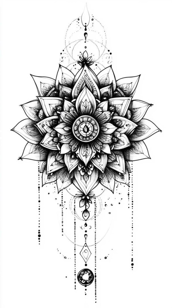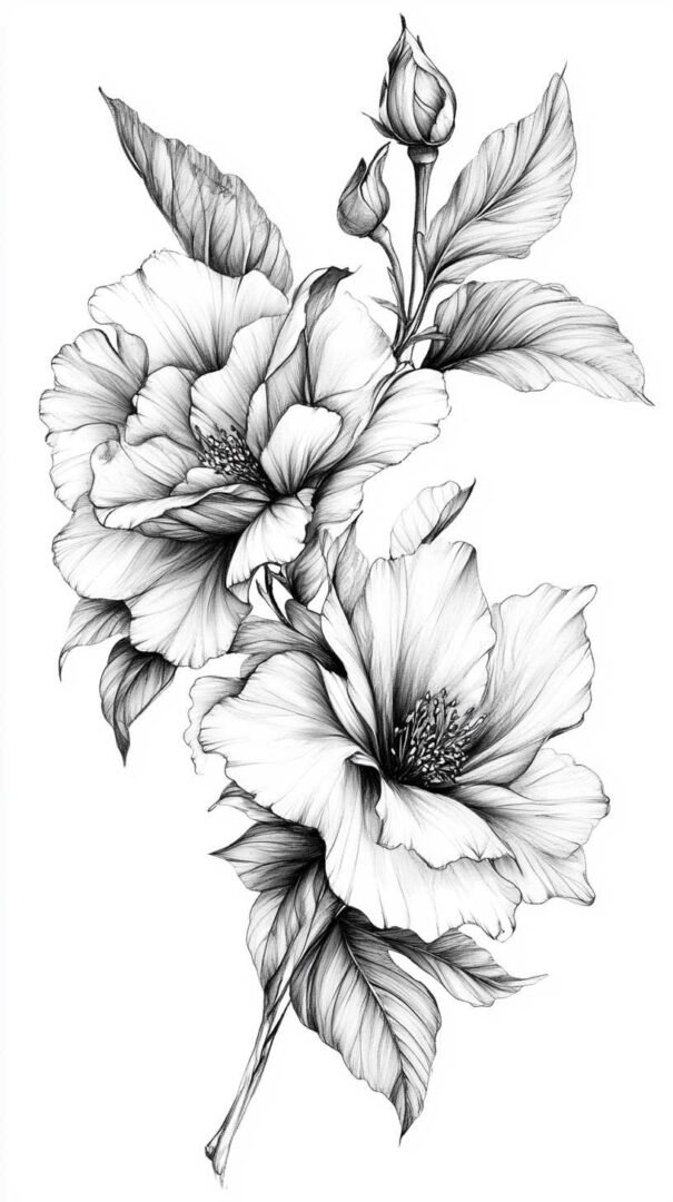 Mythical and fantasy elements add a layer of intrigue to black and white tattoo sketches. Dragons, phoenixes, and unicorns are popular choices, their forms twisting and coiling in dramatic poses. The high-resolution aspect of 4K HD allows for elaborate scales on a dragon’s body or the ethereal mane of a mythical horse, all rendered through varying line weights and shadow gradients.