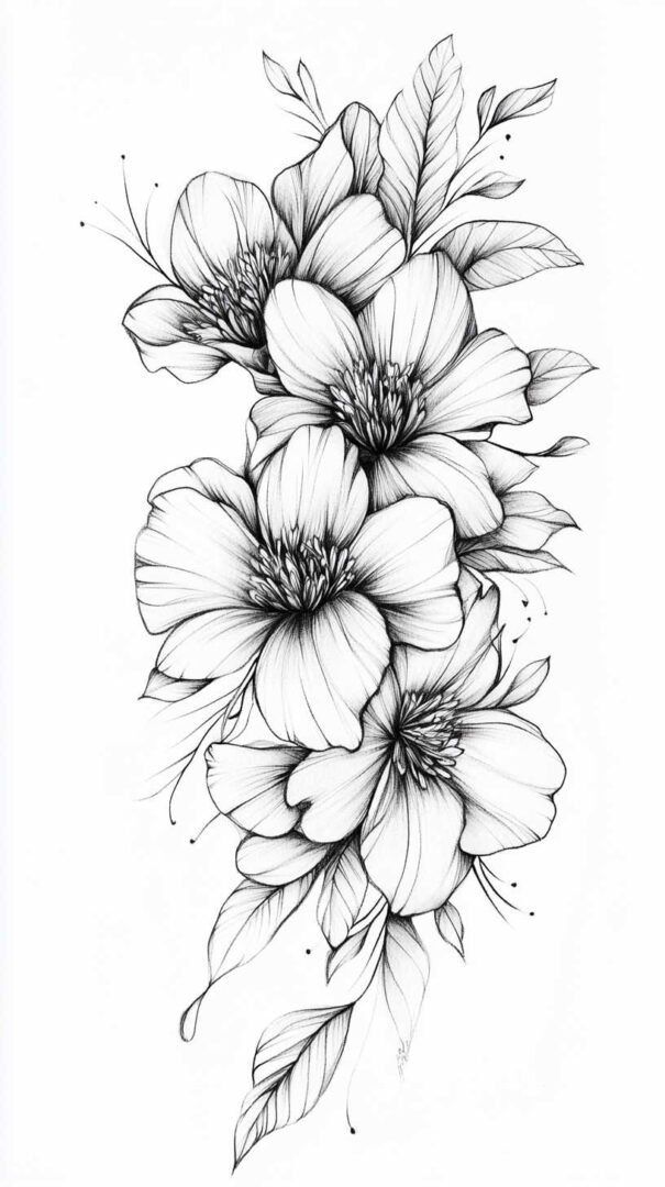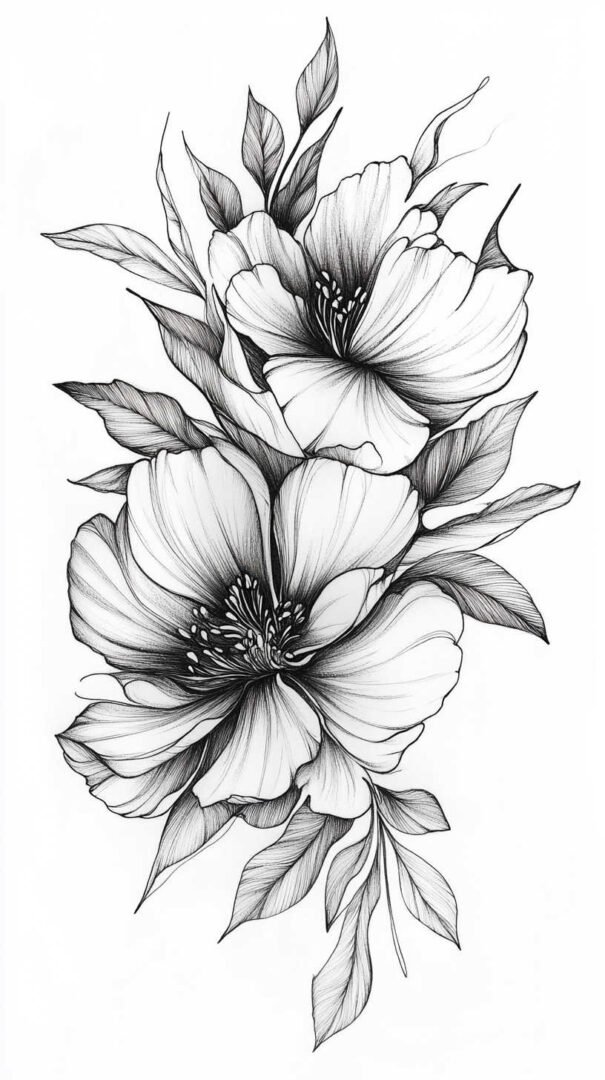 - Floral and Botanical Blackwork: Transforms organic subjects into stark monochrome. Petals, leaves, vines, and stems rendered in solid black with negative space defining veins and contours, blending delicacy with intensity.