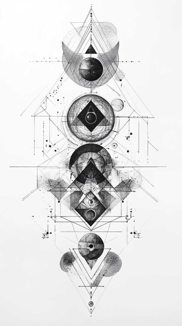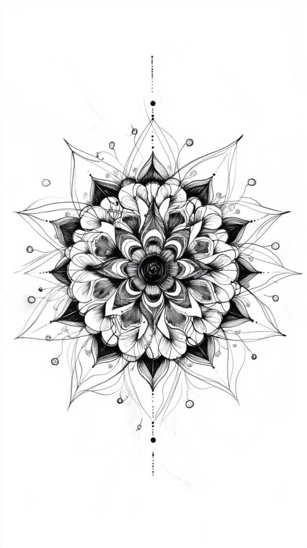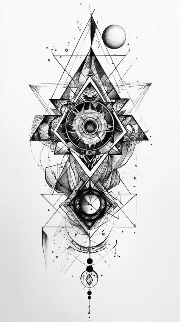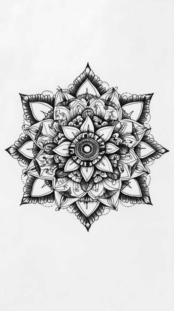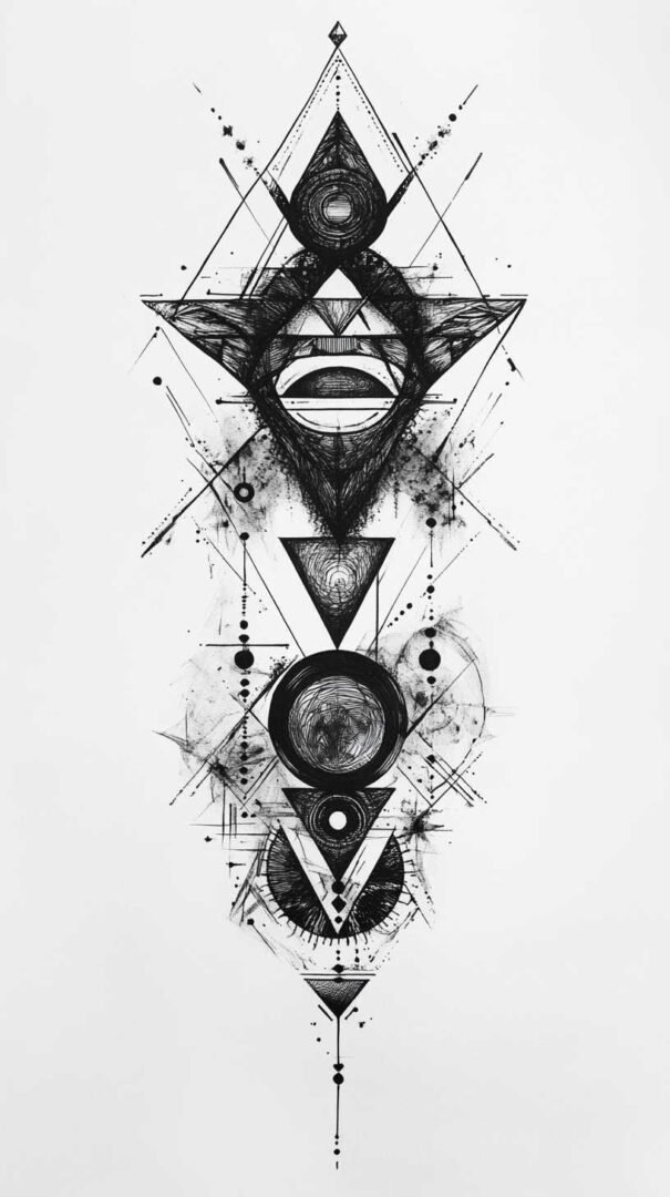 - Geometric Blackwork: Relies on sacred shapes like triangles, circles, hexagons, and mandalas. Symmetry and mathematical harmony dominate, often evoking balance and cosmic order. Sketches feature interlocking patterns that create optical illusions or infinite depth.