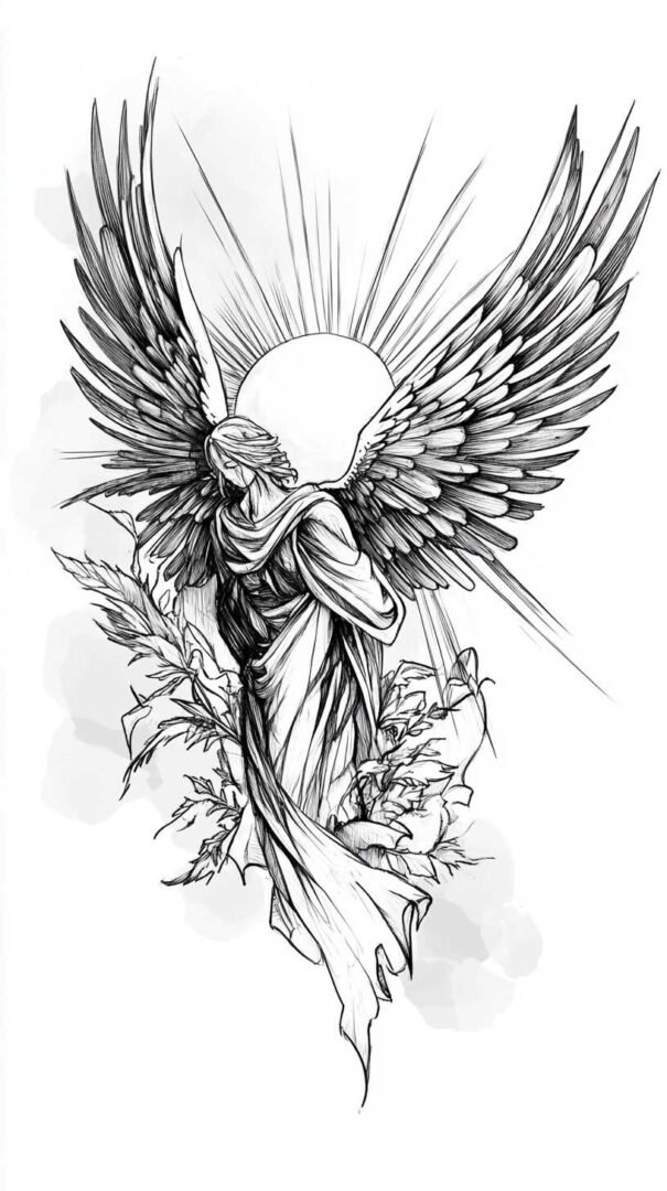 Angel wings evoke protection and divinity, often sketched flanking “Blessed.” High-resolution details capture feather textures and wing curves, adding a sense of movement and lightness. Floral motifs, such as roses or lotuses, symbolize growth and beauty amidst blessings. Sketches in 4K HD highlight petal intricacies and stem integrations, blending nature with the textual element.