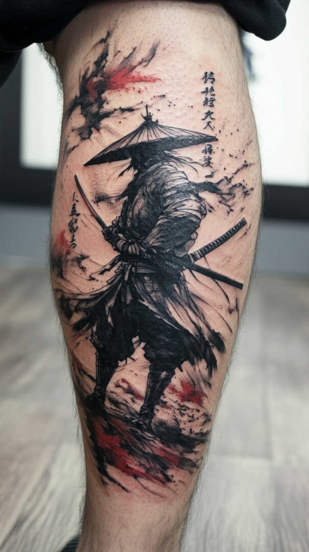 Eagles stand for freedom, vision, and spiritual elevation. Wings spread across the calf convey soaring ambition and clarity. - Samurai or Warrior