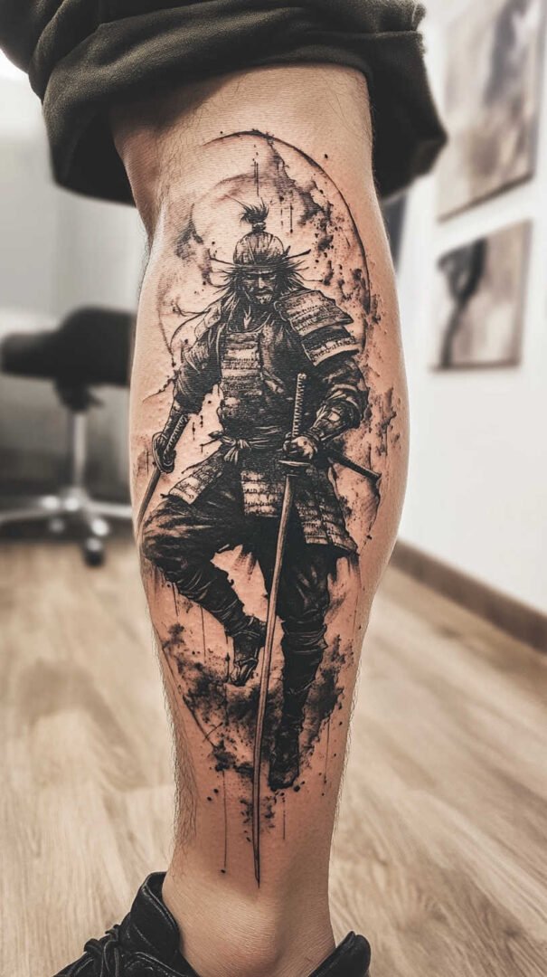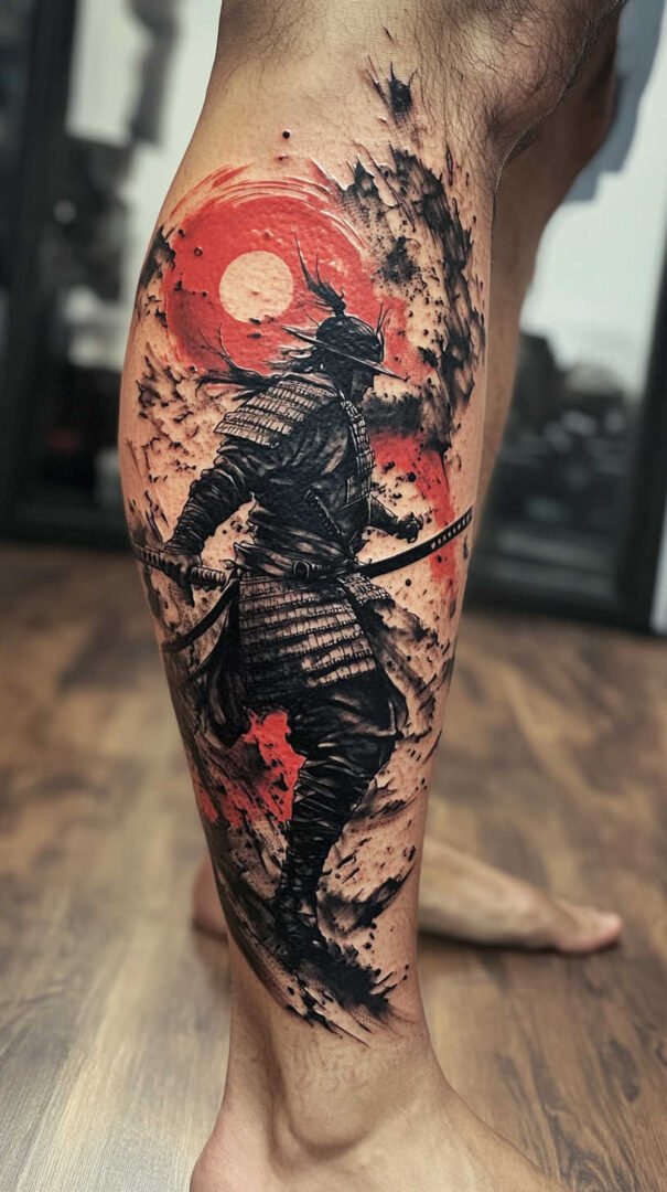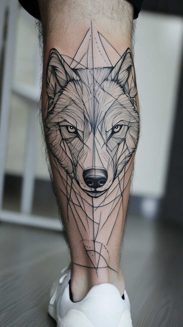 Tribal and Polynesian patterns bring bold geometric lines and cultural depth. These designs often wrap around the calf, emphasizing symmetry and flow. Thick black outlines combined with negative space create striking silhouettes that highlight muscle definition.