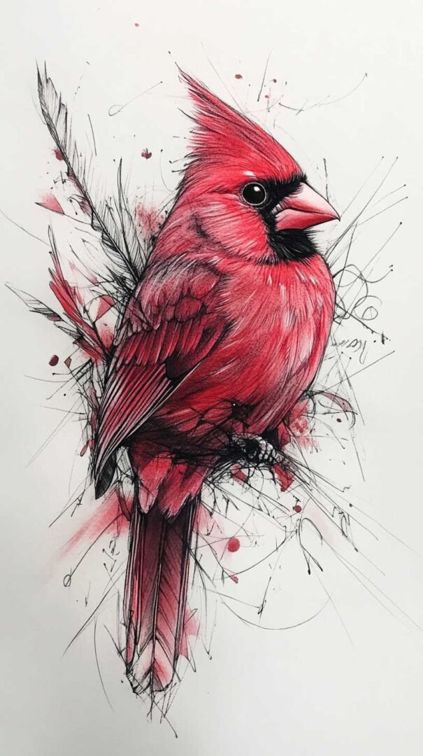 Minimalist approaches strip the design to essentials—a simple cardinal outline with geometric accents or abstract flourishes. These sketches thrive in 4K HD, where subtlety shines through crisp lines and balanced composition. A single cardinal on a branch, sketched with sparse details, can evoke serenity and focus.