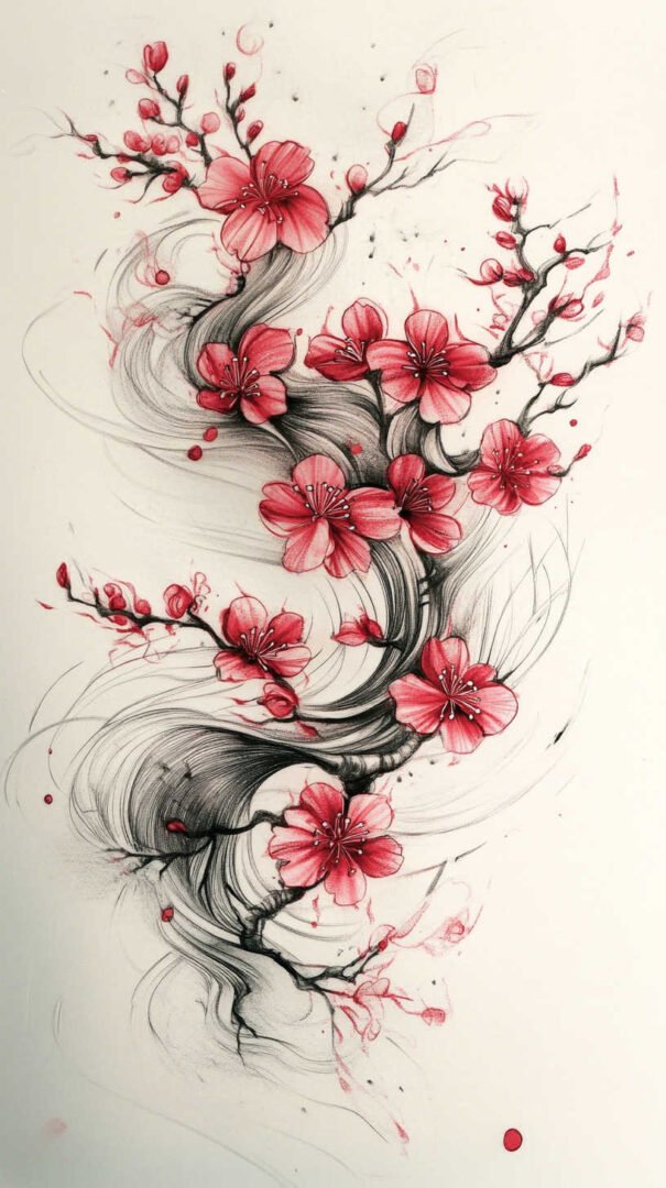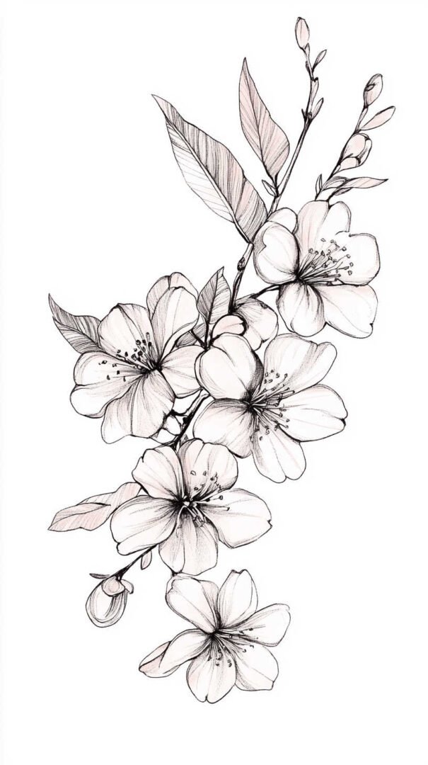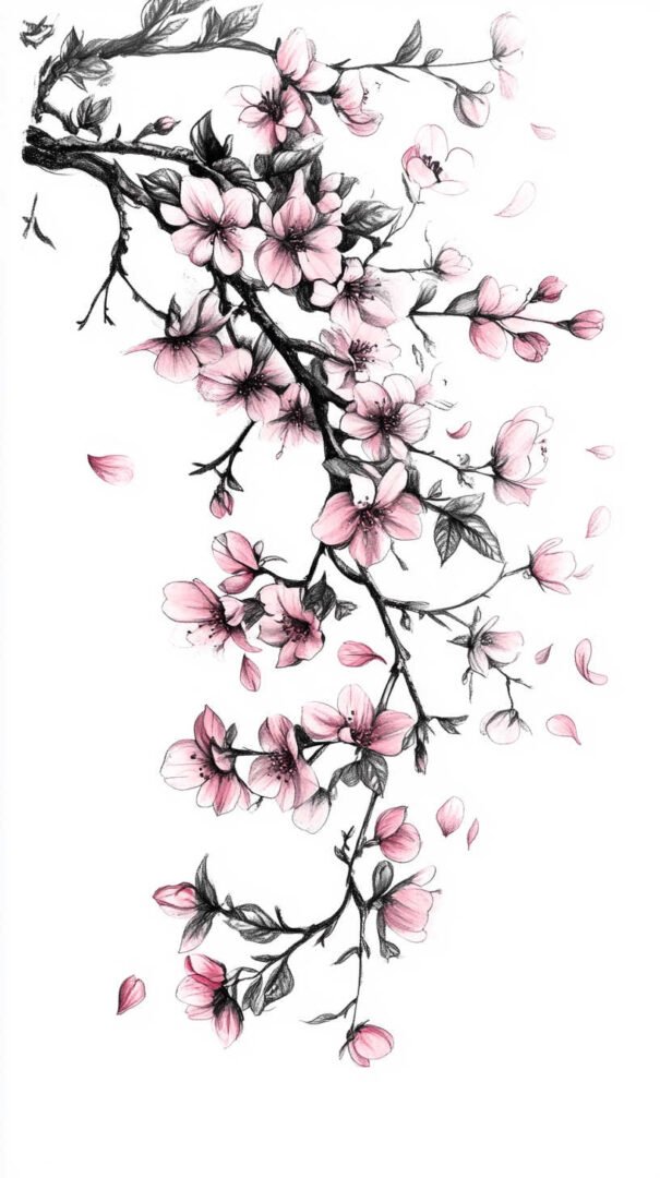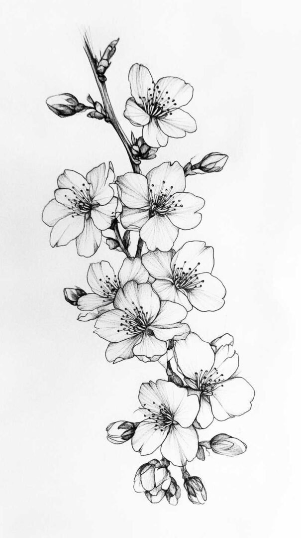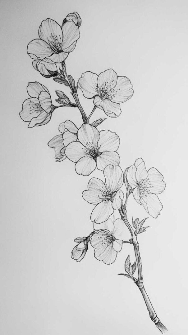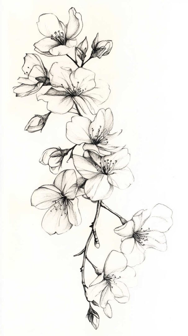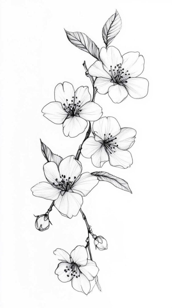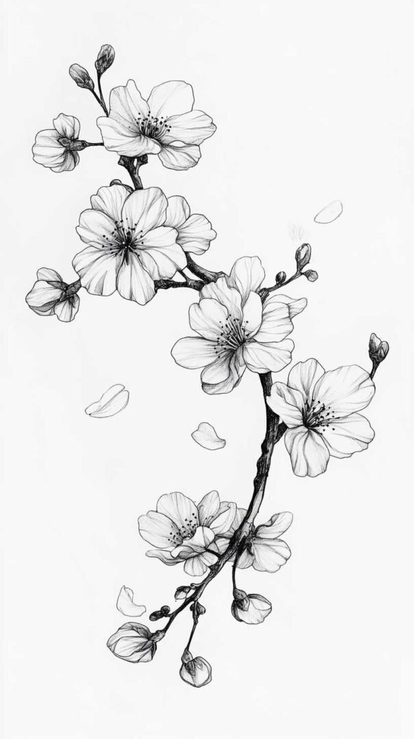 These meanings make cherry blossom sketches versatile: a single petal can signify quiet reflection, while a full branch cluster speaks to enduring beauty despite brevity.