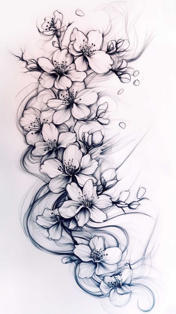 Cherry blossom tattoos, often inspired by the iconic Japanese sakura, rank among the most elegant and meaningful floral designs in modern body art. These sketches capture delicate petals, graceful branches, and flowing compositions that translate beautifully into high-definition ink.