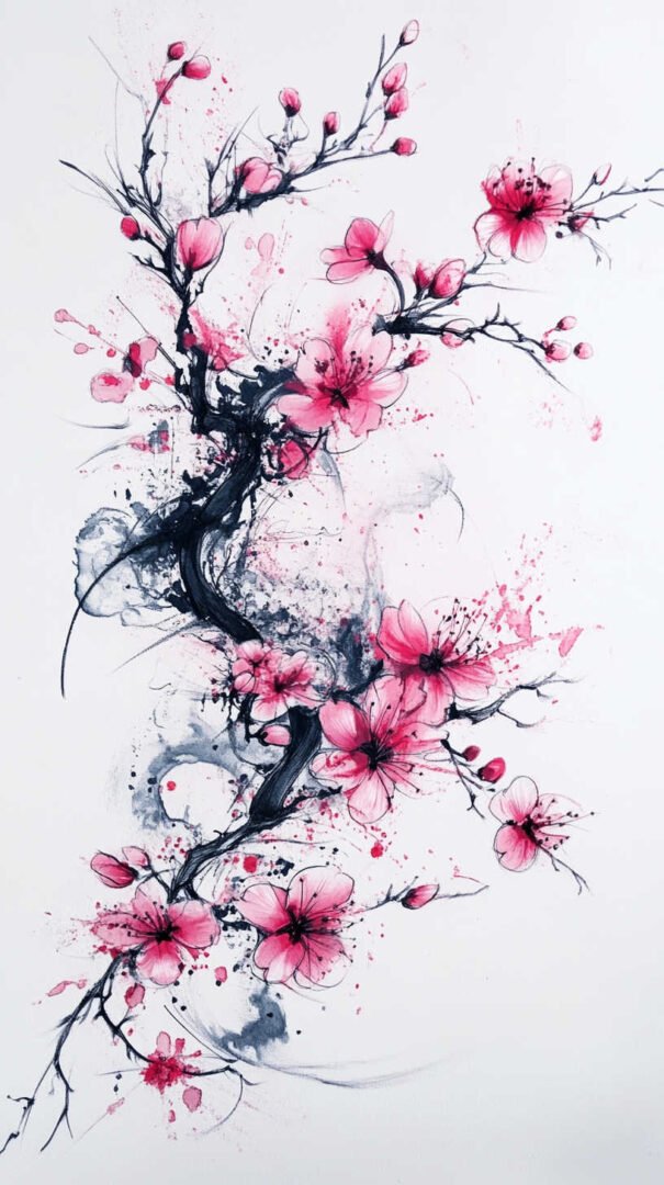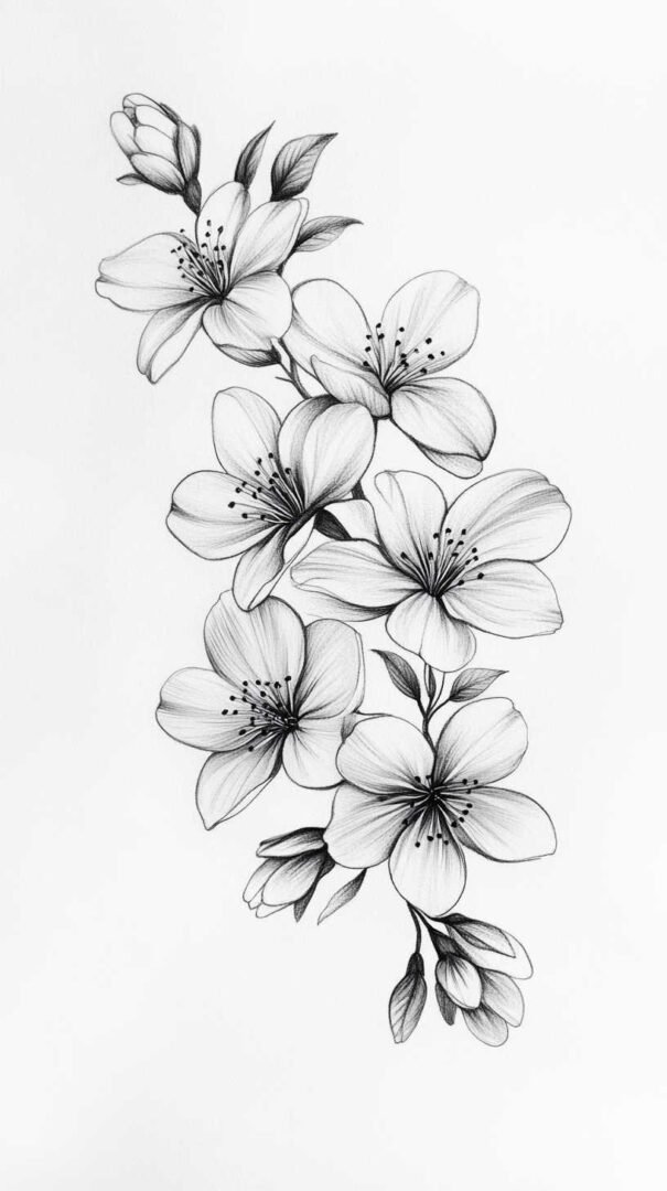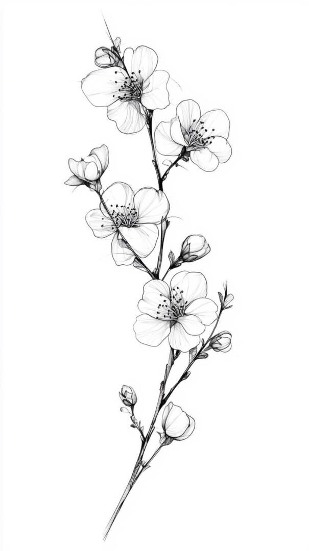 - Minimalist — Simple single blossoms or sparse branches using clean lines and negative space. These focus on elegance and subtlety, perfect for understated yet striking sketches.