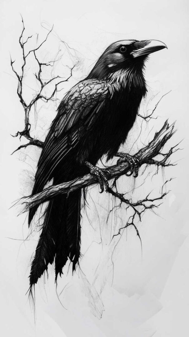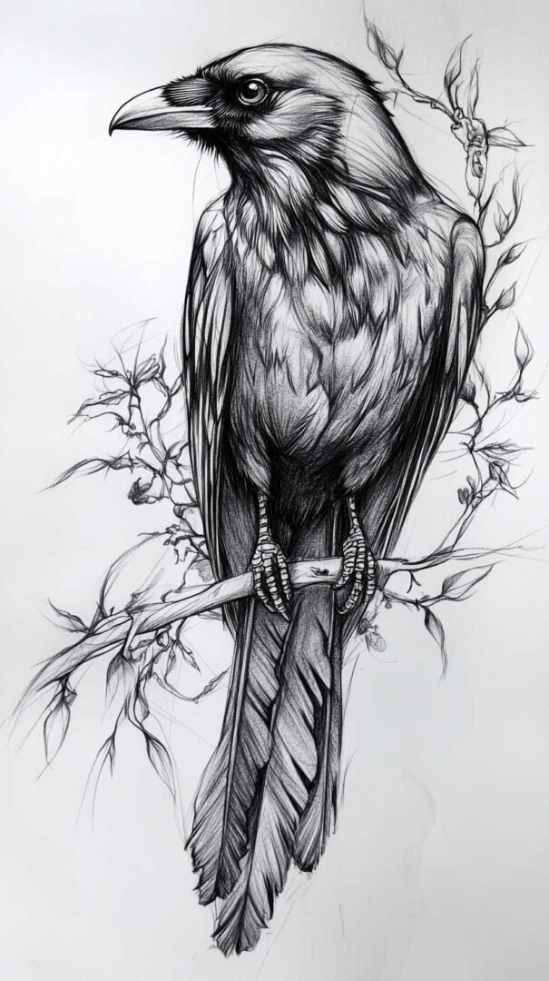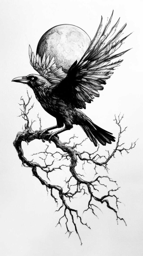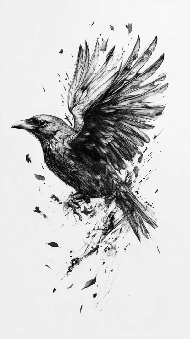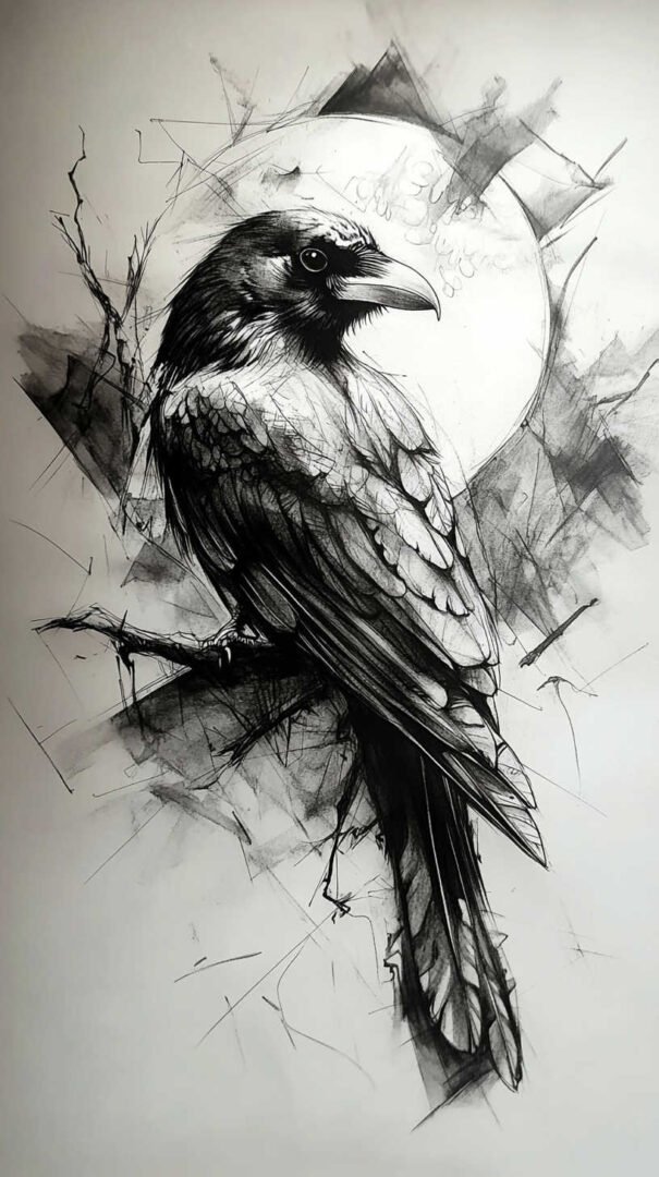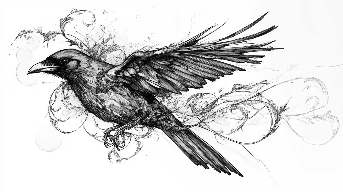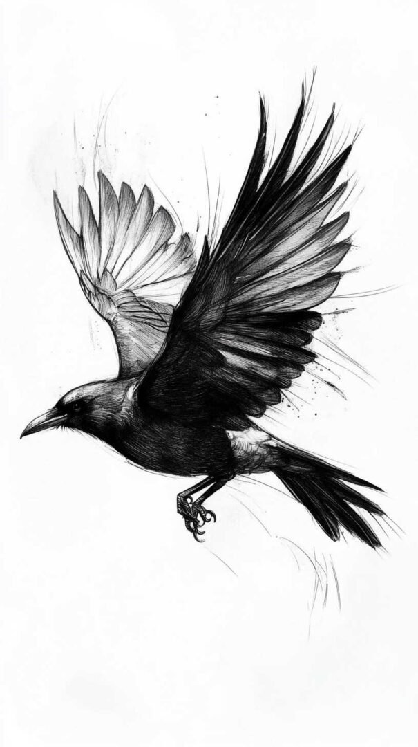 Blackwork and lineart styles focus on monochromatic designs, using intricate lines to form the crow’s silhouette. These are ideal for sketches, as they translate well to tattoos with clean, precise edges. A 4K HD version might include fine details like individual feather barbs or subtle dotwork for shading, enhancing the gothic appeal.