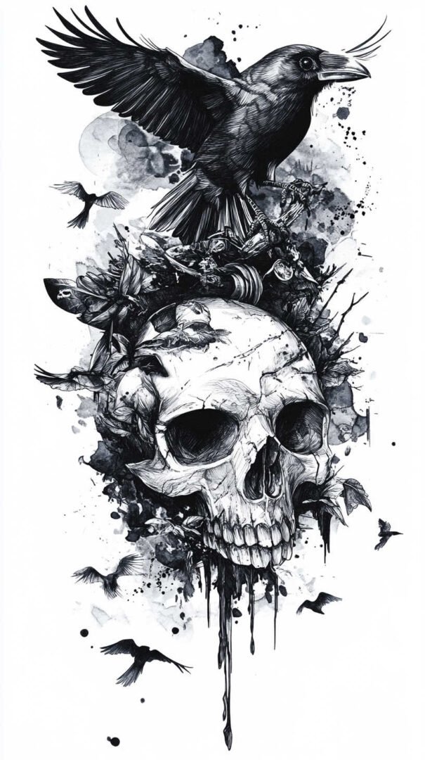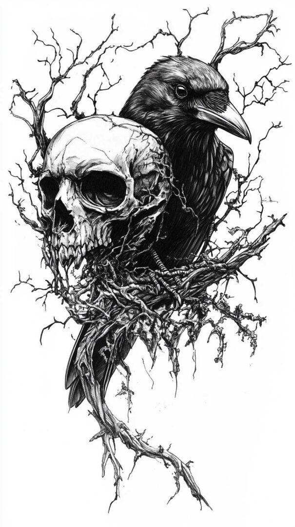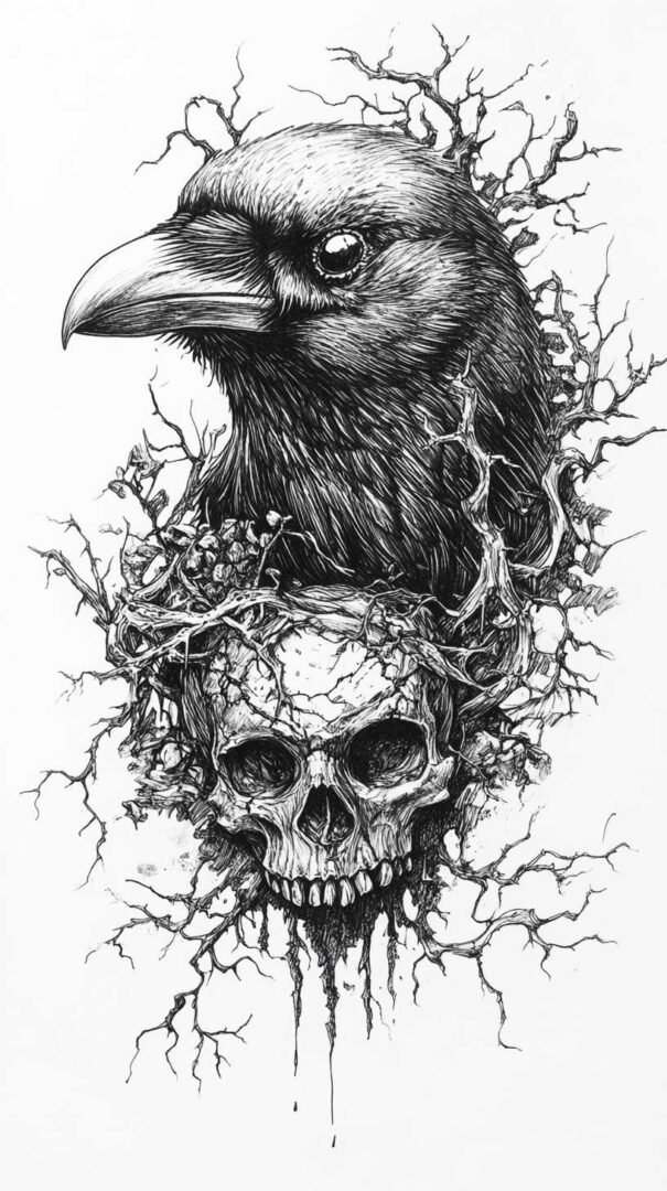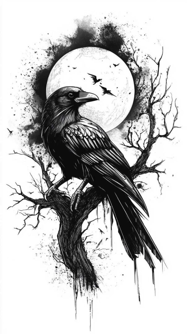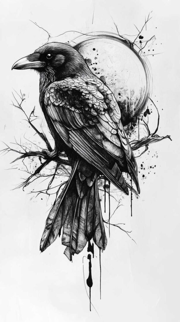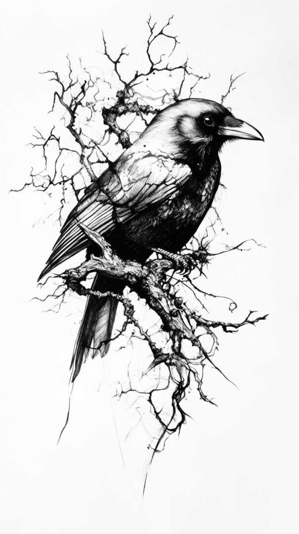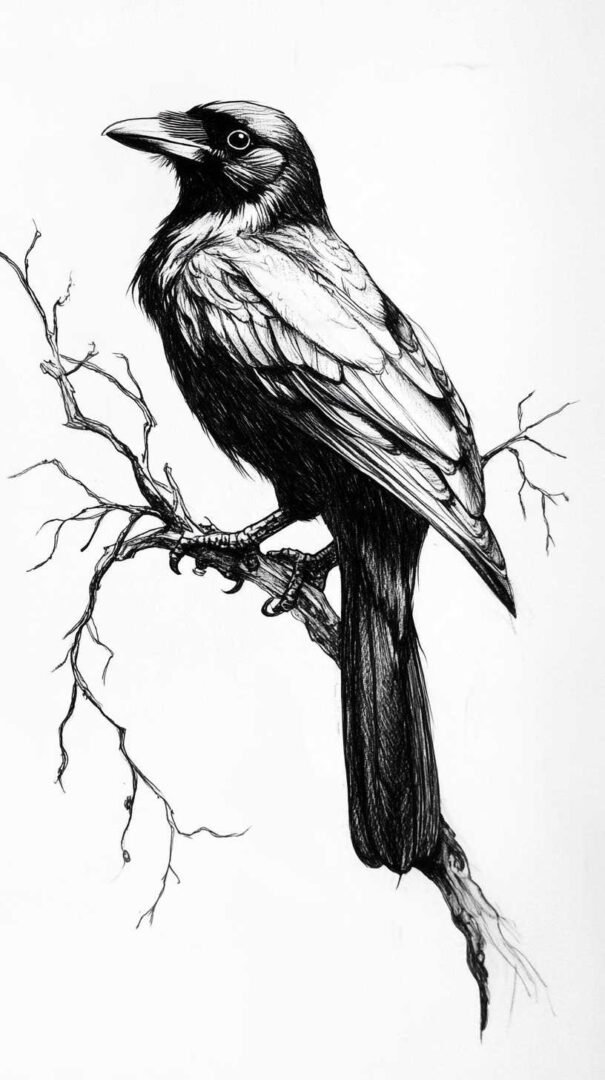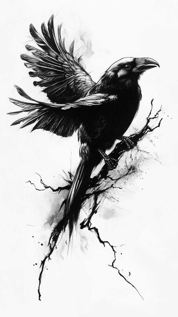 Blackwork and lineart styles focus on monochromatic designs, using intricate lines to form the crow’s silhouette. These are ideal for sketches, as they translate well to tattoos with clean, precise edges. A 4K HD version might include fine details like individual feather barbs or subtle dotwork for shading, enhancing the gothic appeal.