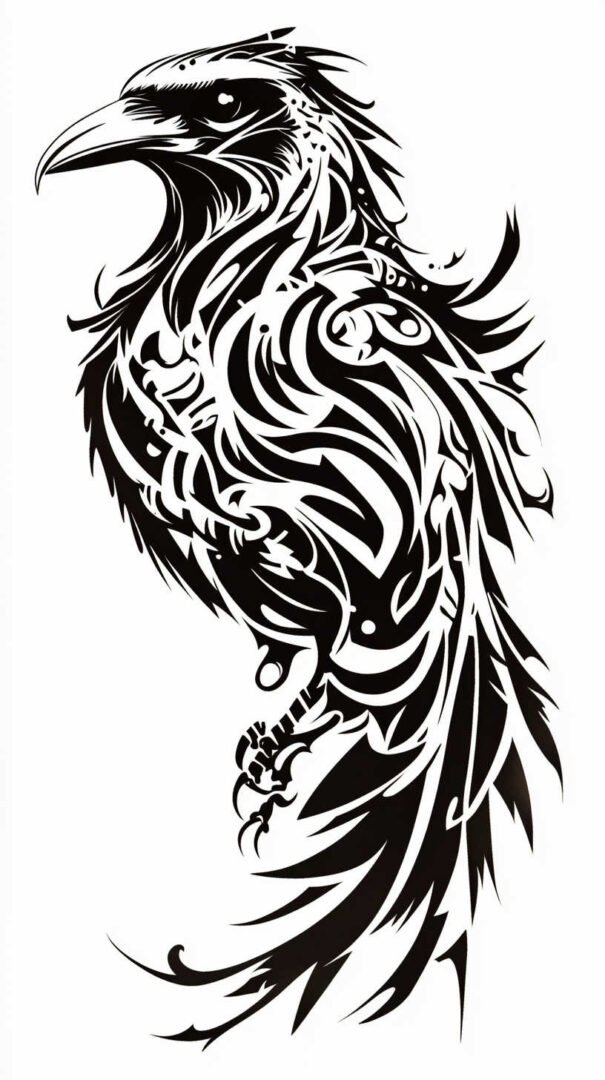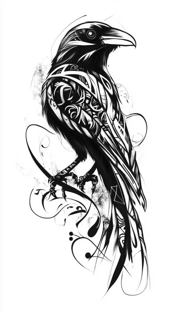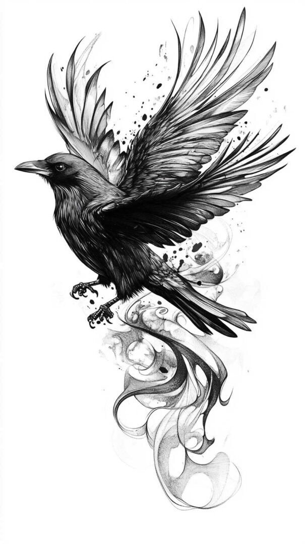 An abstract smoke crow design offers a modern twist, perfect for those seeking ethereal symbolism.