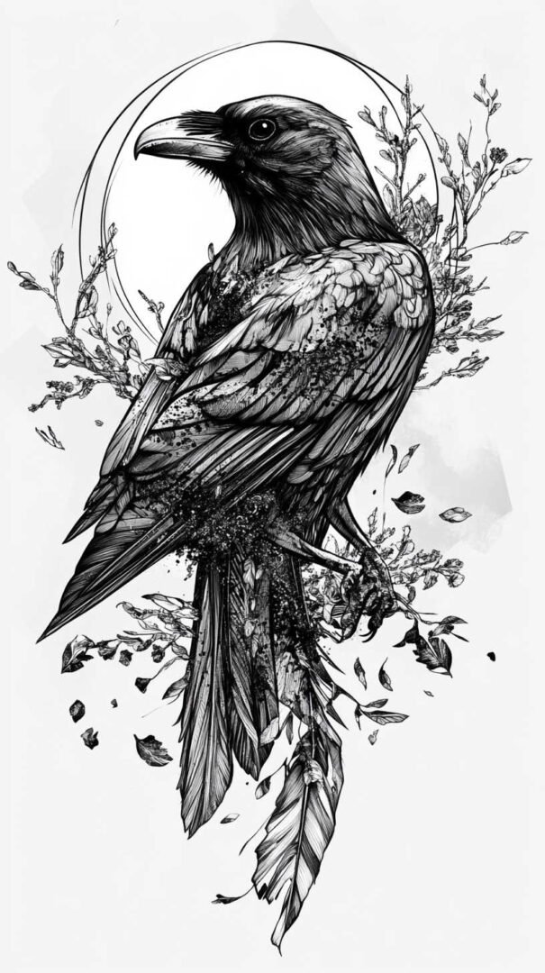 For inspiration, consider this lineart crow sketch with floral accents, showcasing elegant blackwork.