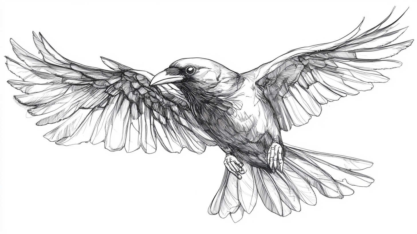 In crow sketches, HD enhances feather rendering—each quill can be individually detailed, creating a textured look. Beaks and eyes gain realism with reflective highlights, making the crow’s gaze piercing. Backgrounds, such as misty forests or starry skies, add context without overwhelming the main subject.