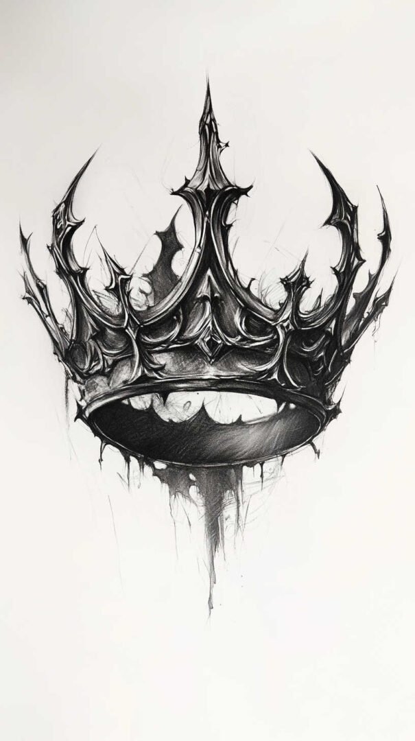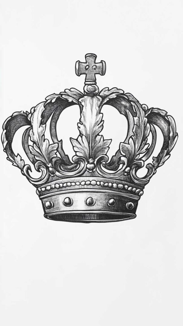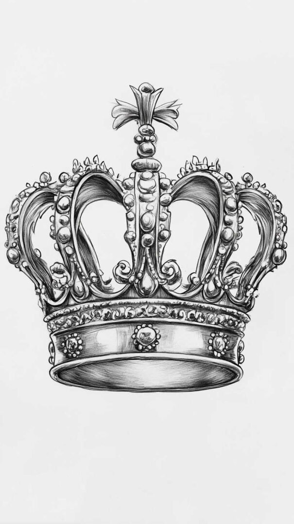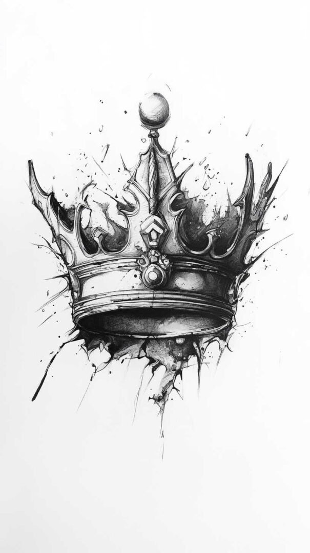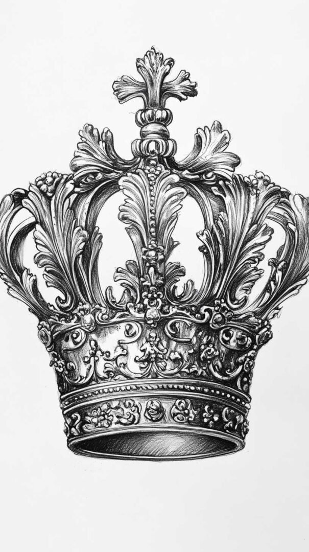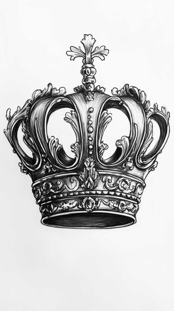 Ornate or Victorian-style crowns draw from historical inspirations, featuring flourishes, crosses, and elaborate patterns. In sketches, these burst with detail: swirling vines, embedded jewels, and textured gold effects that pop in 4K. For a darker twist, crowns paired with skulls symbolize the fleeting nature of power, blending regality with mortality.
