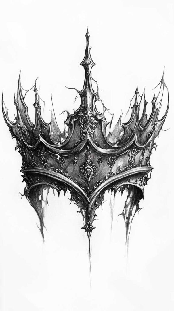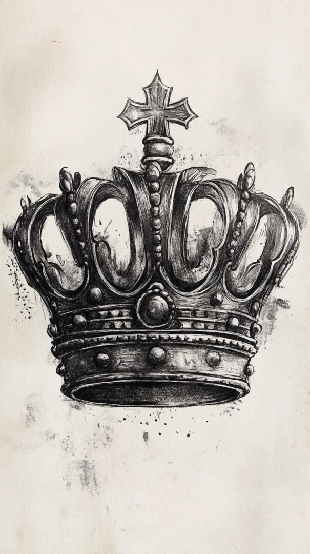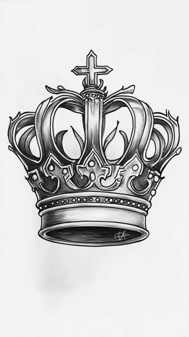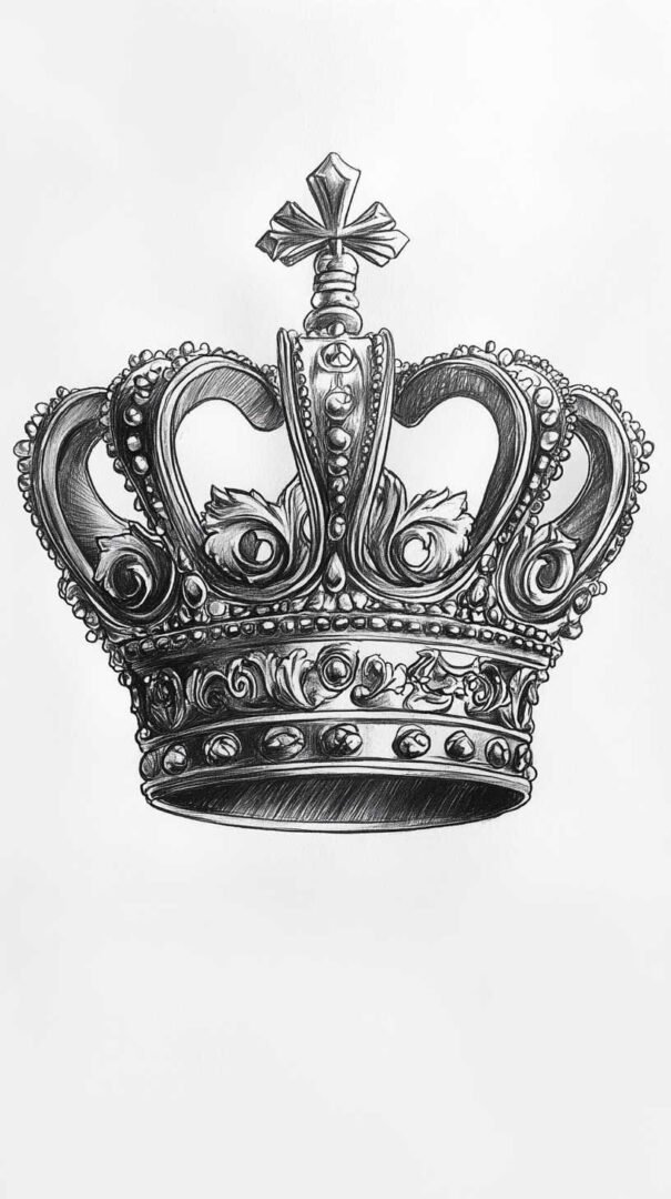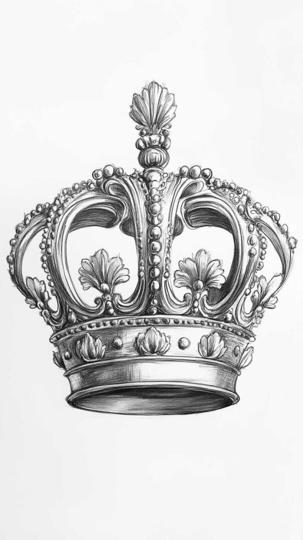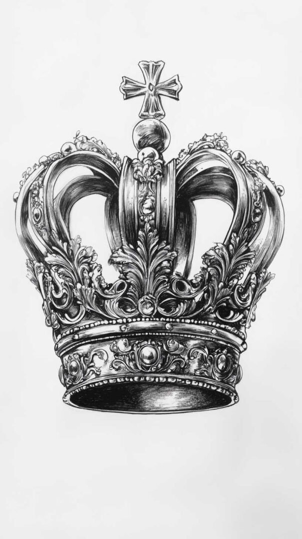 Ornate or Victorian-style crowns draw from historical inspirations, featuring flourishes, crosses, and elaborate patterns. In sketches, these burst with detail: swirling vines, embedded jewels, and textured gold effects that pop in 4K. For a darker twist, crowns paired with skulls symbolize the fleeting nature of power, blending regality with mortality.