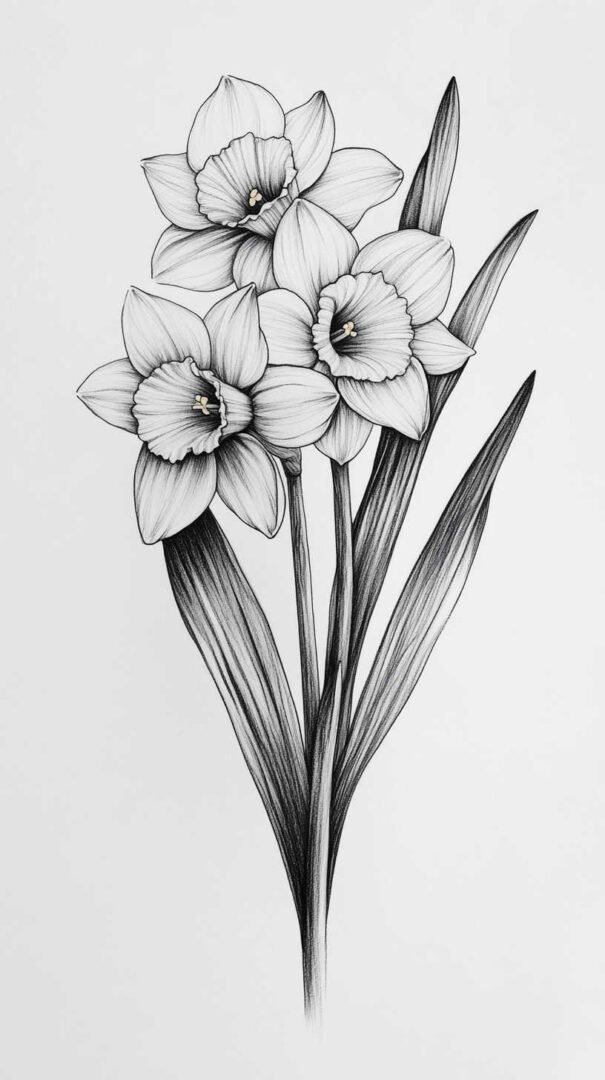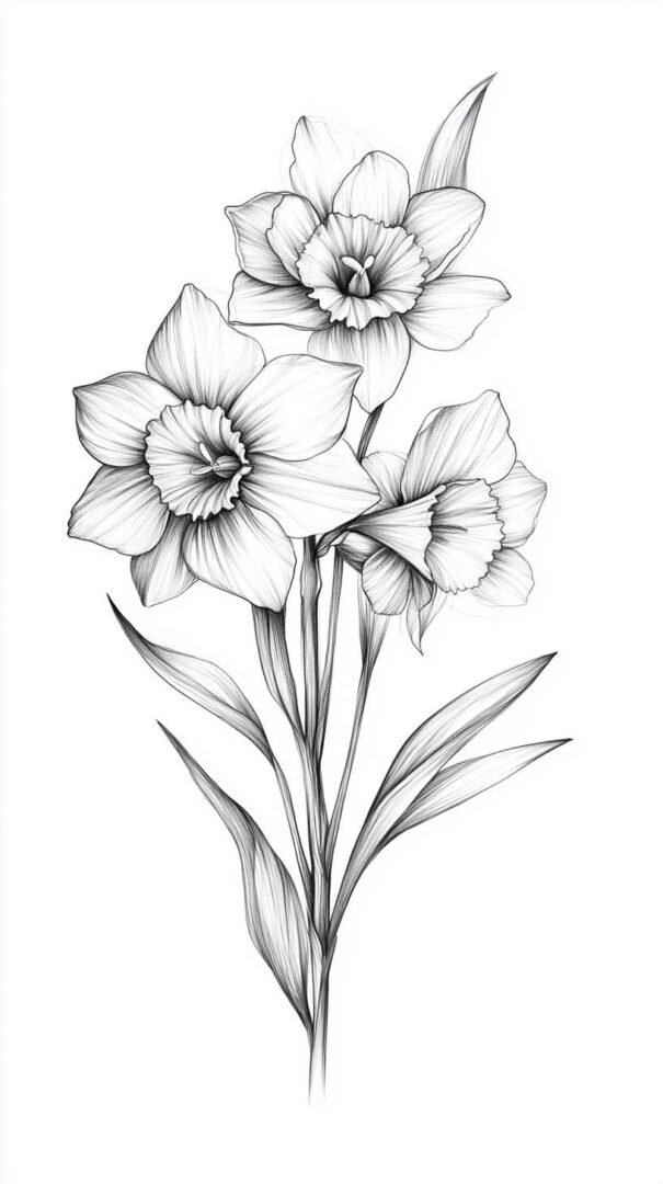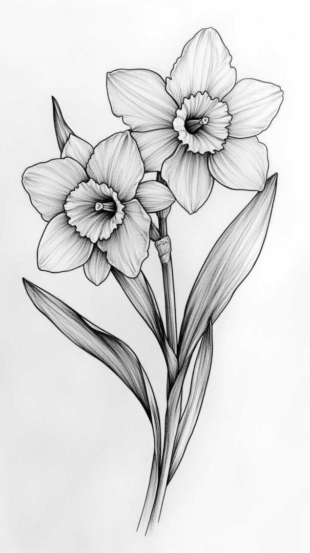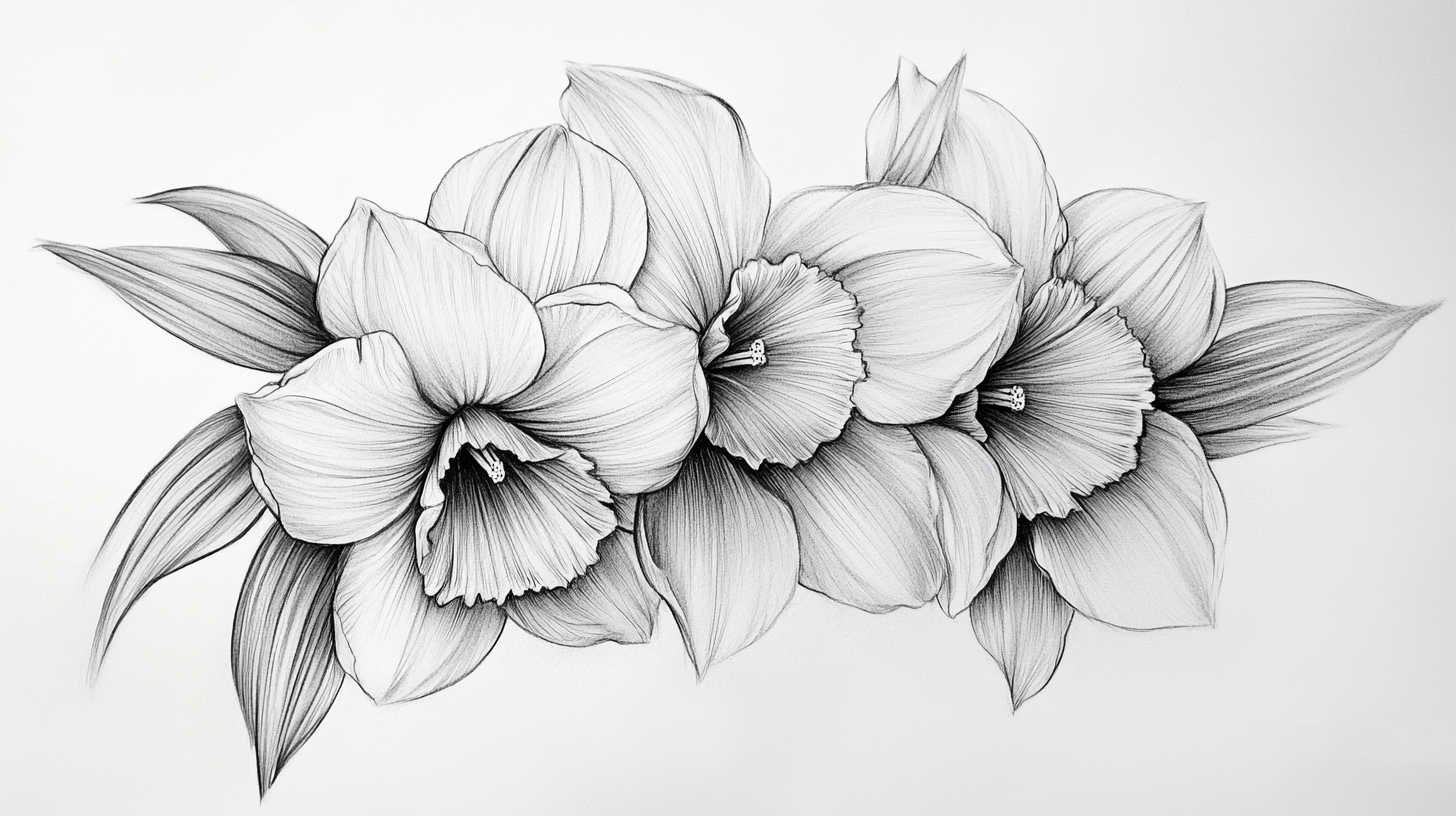 These multifaceted meanings allow daffodil sketches to serve as daily affirmations. A high-definition design ensures the symbolism remains vivid and impactful, with crisp lines and nuanced colors that prevent fading over time.