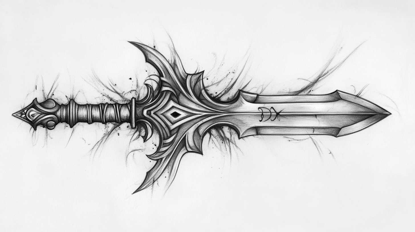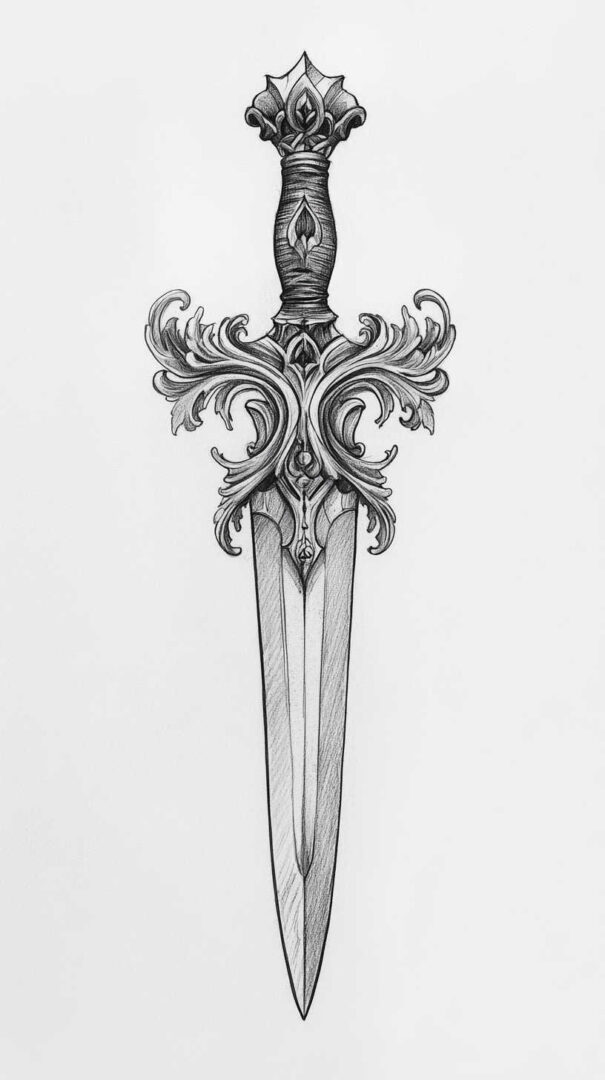 One primary interpretation is strength and courage. The dagger’s purpose as a tool for defense translates into a metaphor for facing obstacles head-on. In high-resolution sketches, artists often emphasize the blade’s sharpness to convey unyielding resolve. Paired with elements like chains or shields, these designs amplify themes of safeguarding oneself or loved ones.