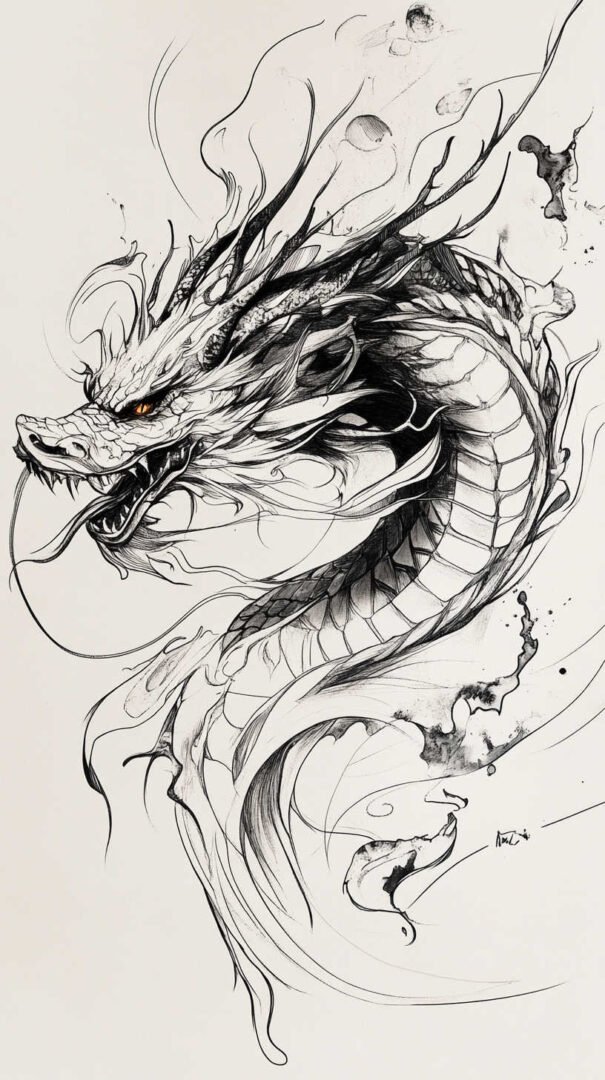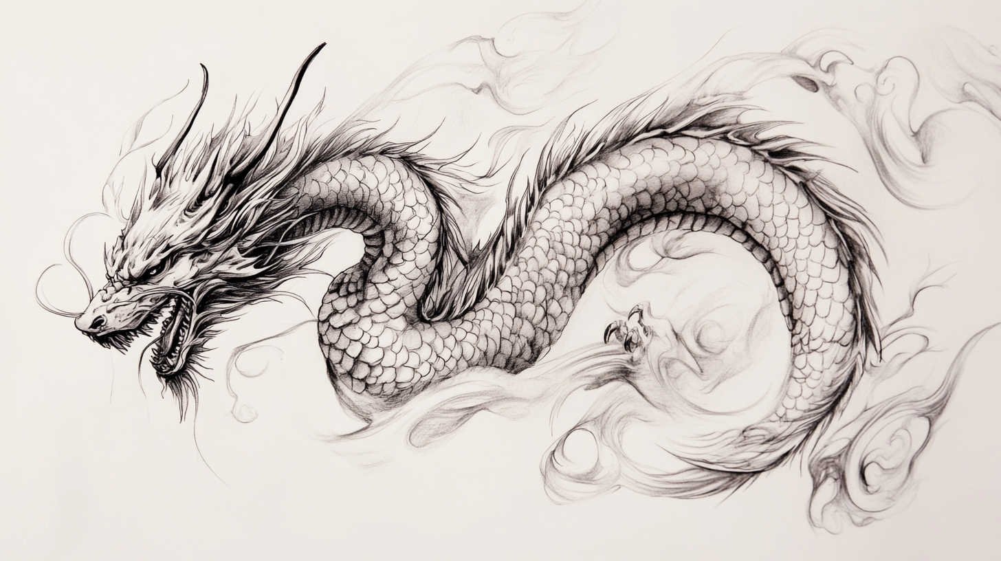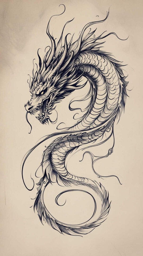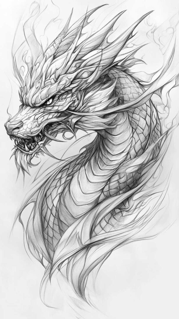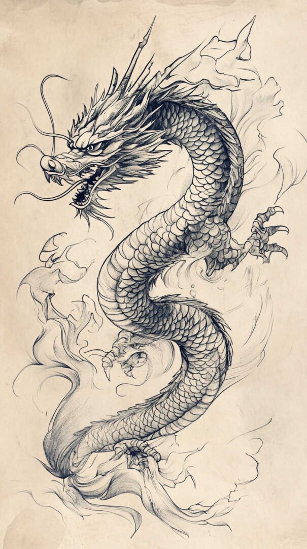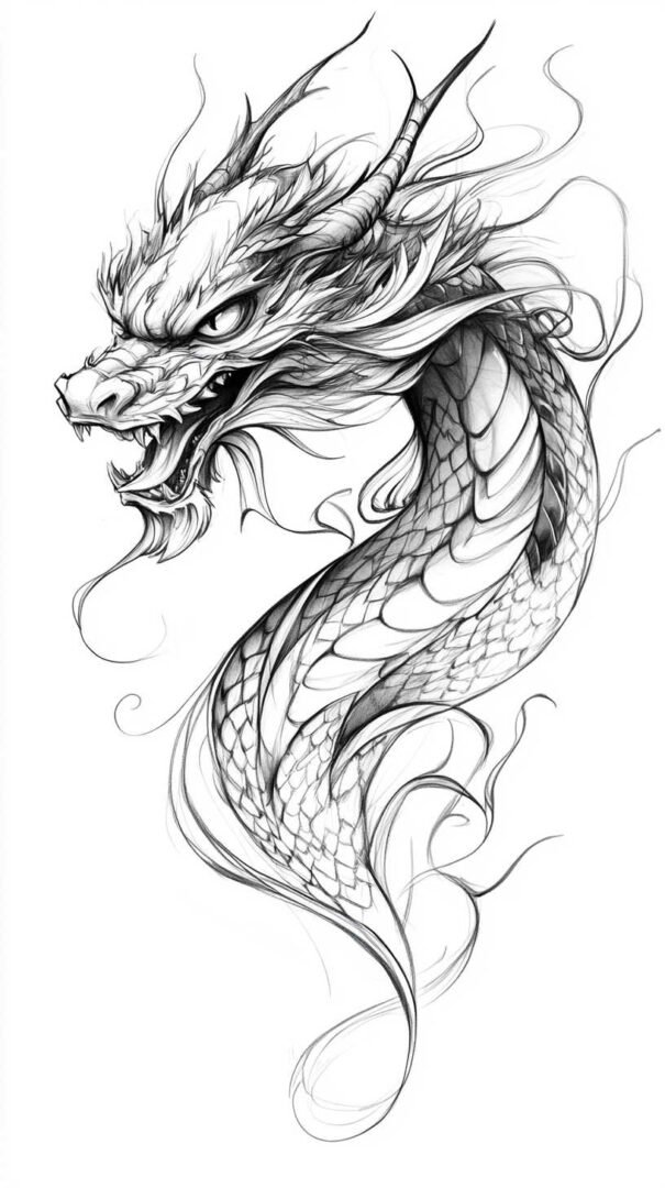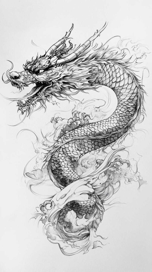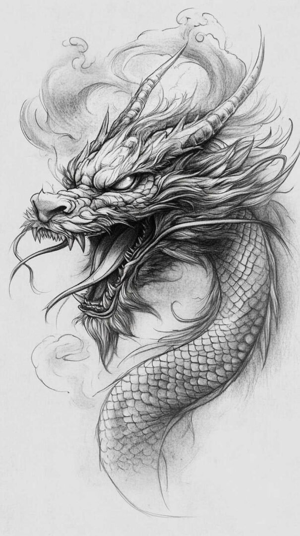 Dragon sketches offer endless customization. Common motifs include dragons clutching pearls (enlightenment), breathing fire (passion and transformation), or entwined with flowers, swords, or skulls for layered storytelling.