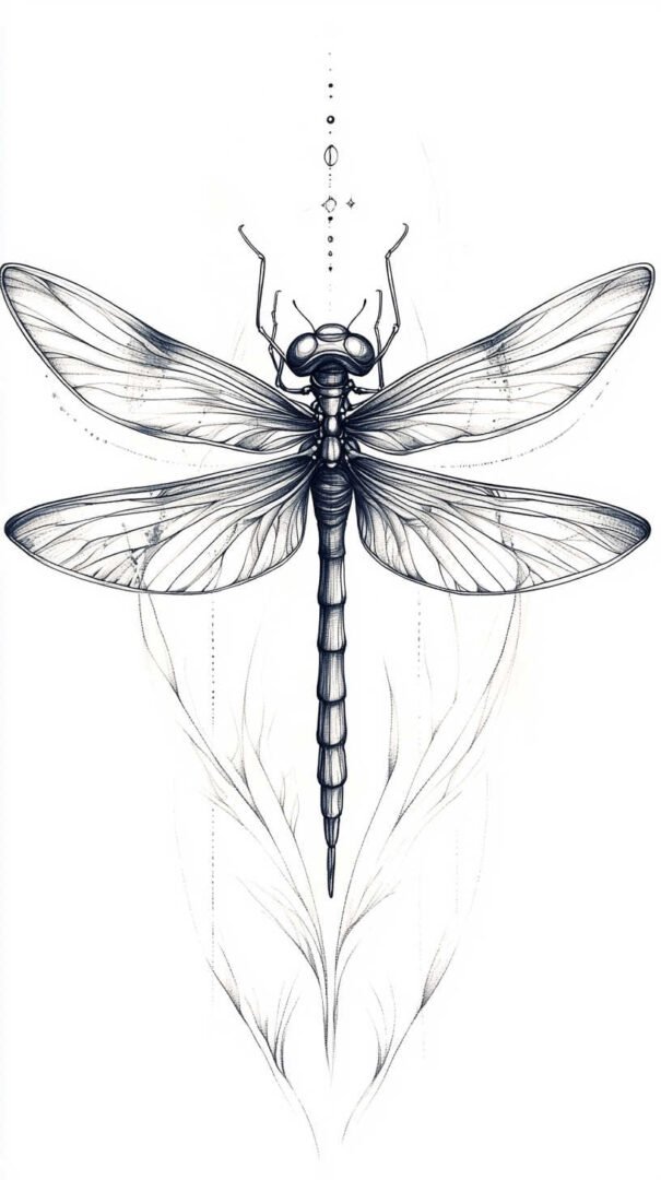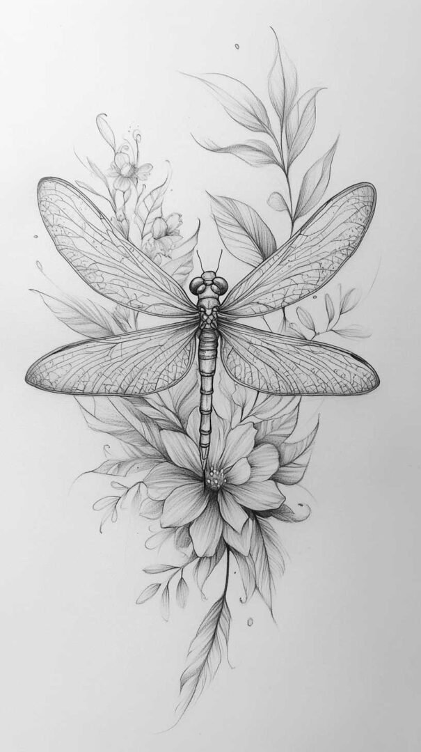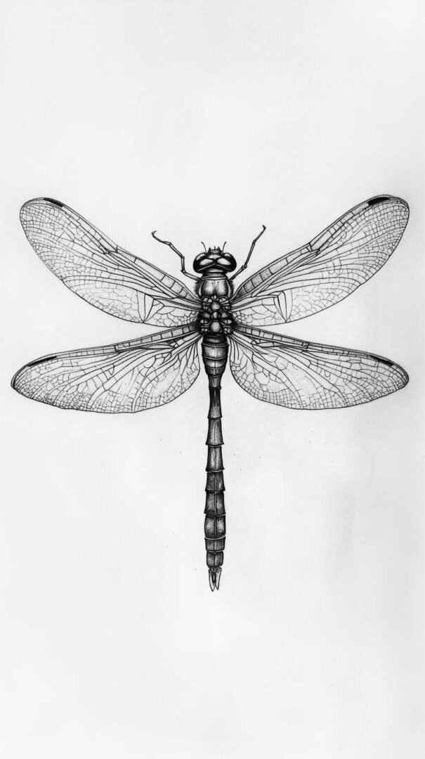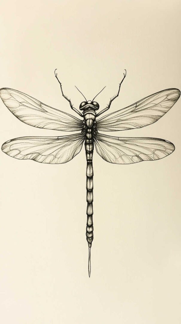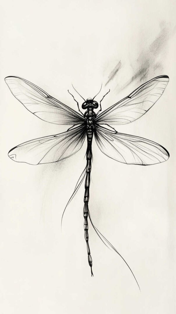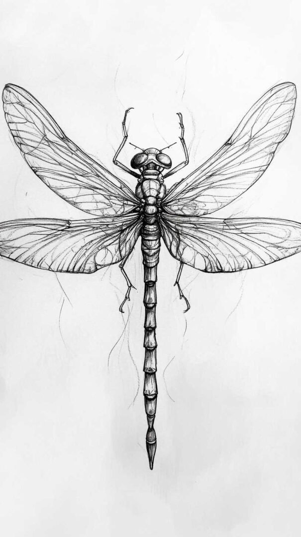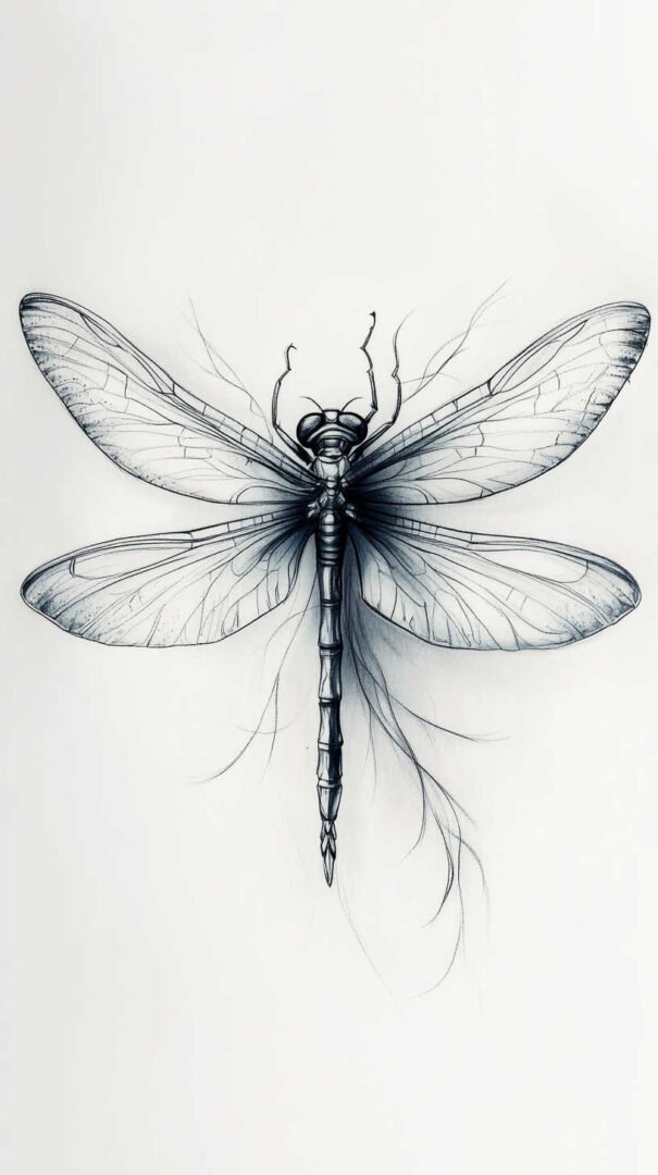 Dragonflies symbolize change, agility, and the illusion of depth in many cultures. Their tattoos often embody personal growth, as the insect undergoes metamorphosis from nymph to adult. In sketch form, this symbolism is amplified through artistic interpretation, where lines can suggest movement or stillness.