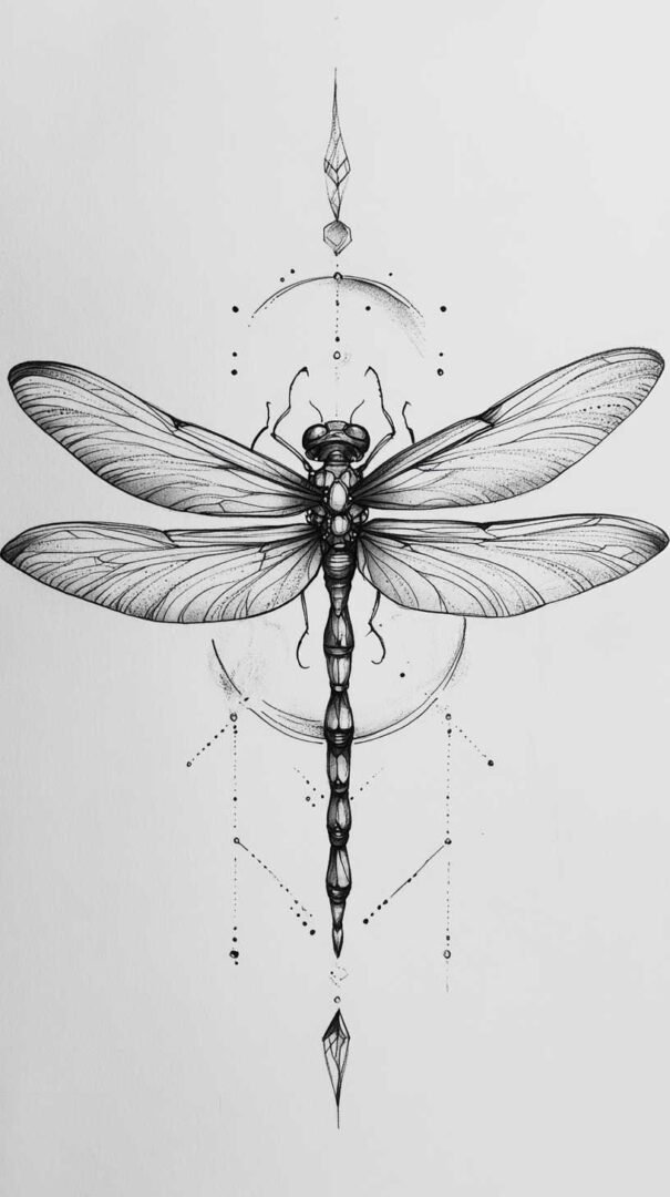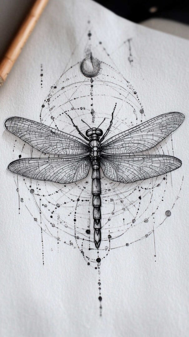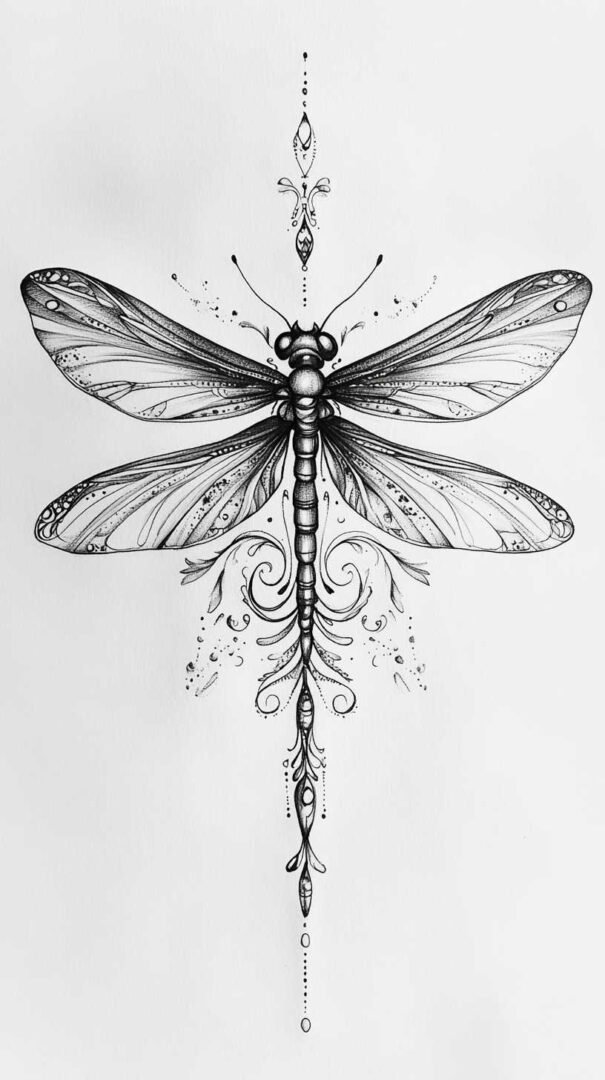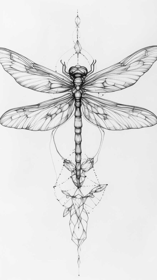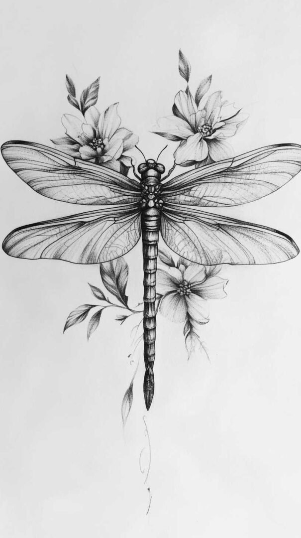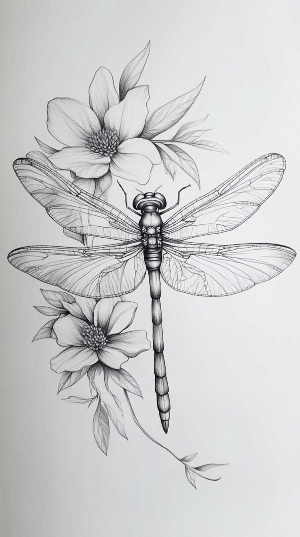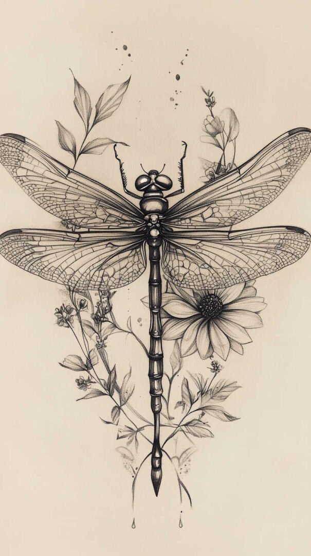 Dragonflies symbolize change, agility, and the illusion of depth in many cultures. Their tattoos often embody personal growth, as the insect undergoes metamorphosis from nymph to adult. In sketch form, this symbolism is amplified through artistic interpretation, where lines can suggest movement or stillness.