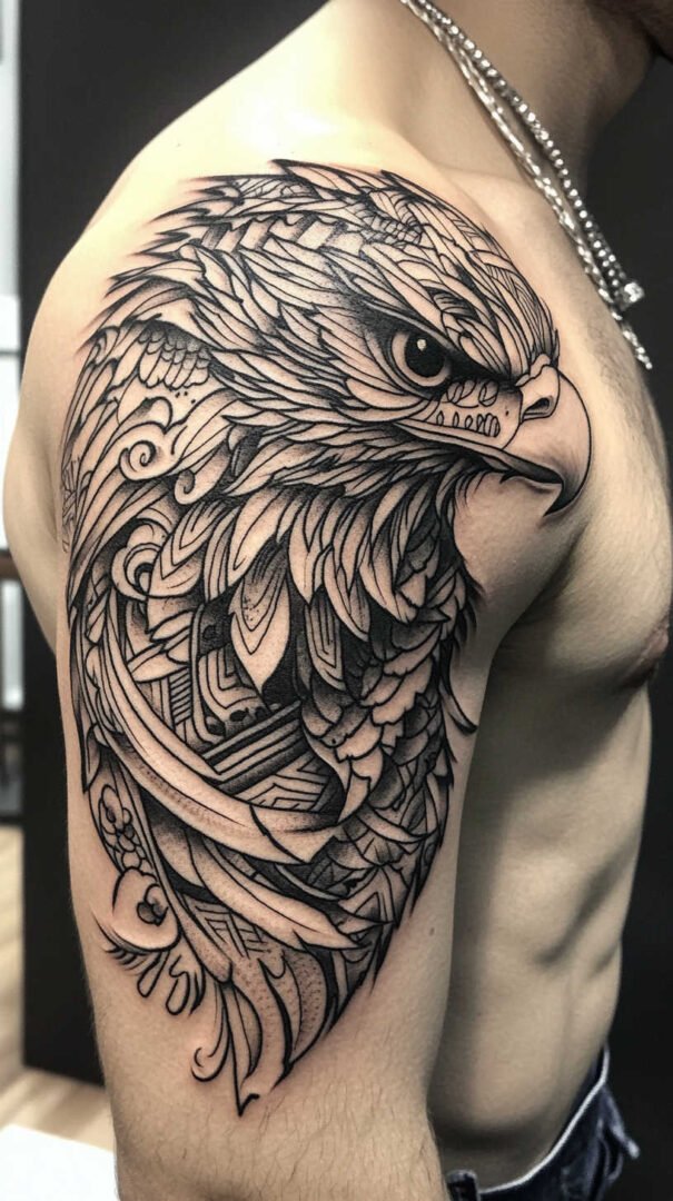 Eagle tattoos have long captivated men seeking bold, powerful body art that exudes strength and freedom. These designs, often rendered in stunning 4K HD quality, showcase intricate details that make the artwork pop with lifelike realism. Imagine feathers so finely etched they seem to rustle in the wind, eyes piercing with intensity, and wings spanning across skin like a majestic bird in flight.