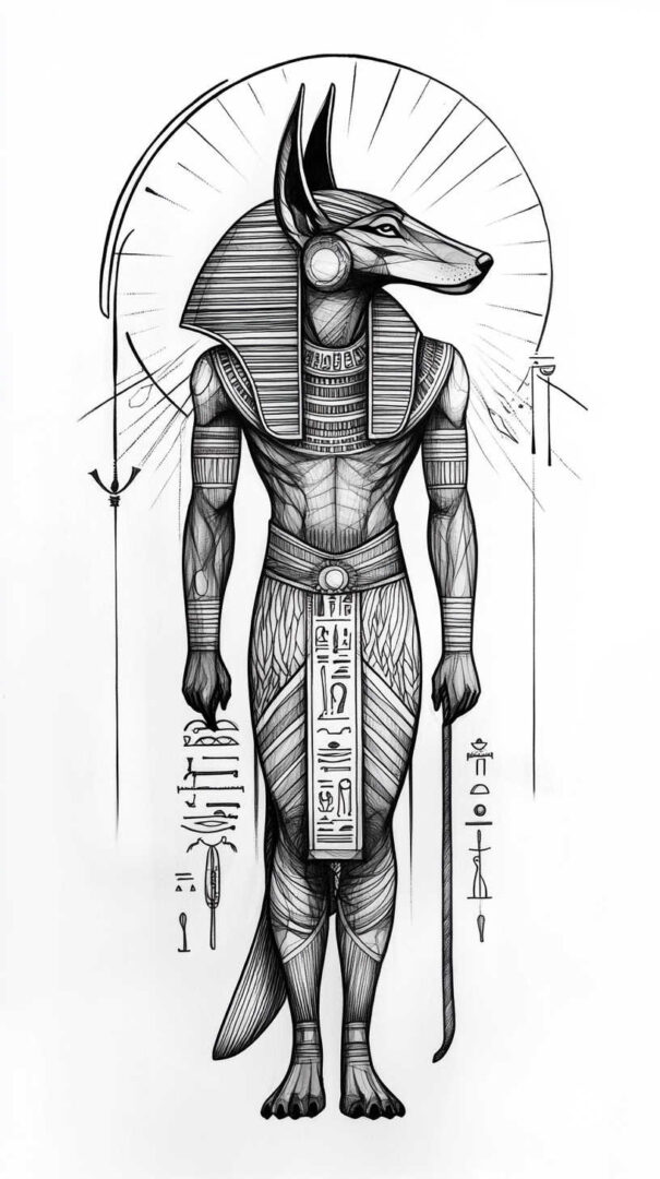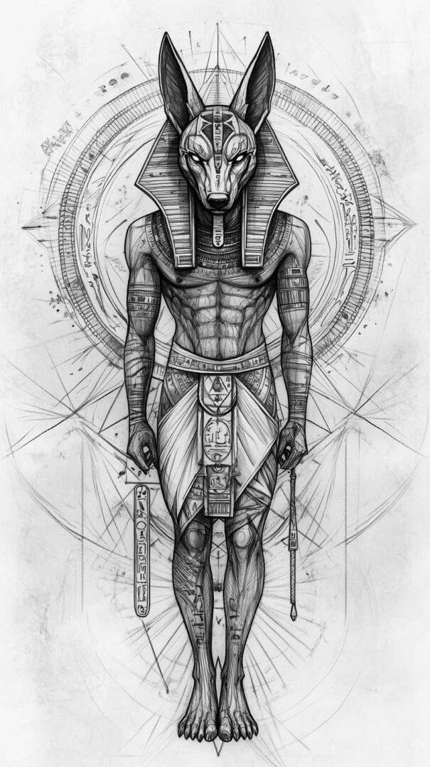 Egyptian tattoos appeal to men and women seeking powerful, historical, and spiritual symbolism: protection, eternal life, divine power, rebirth, and cosmic order. Sketches range from minimalist single symbols to elaborate full-sleeve compositions featuring gods, pyramids, and ankhs. High-resolution renders emphasize clean outlines, balanced negative space, and how elements flow with body contours.